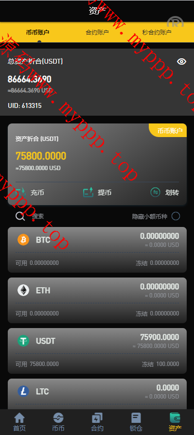 系统功能支持:秒合约、合约、锁仓挖矿、新币认购功能,无平台币,带pc。