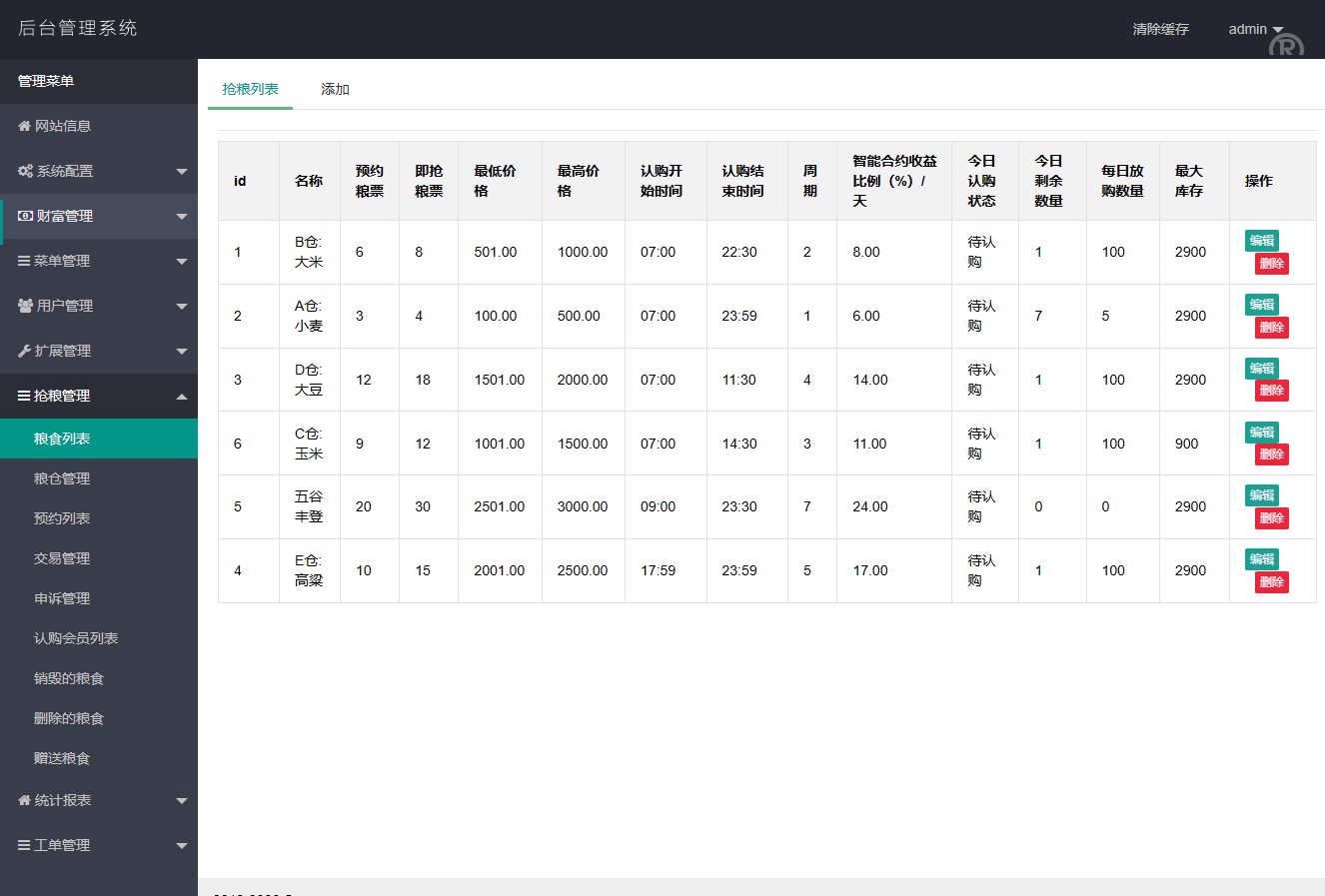 每天抢购交易时间分5个时段,在每个规定时间段内,抢到则能下单,抢不到只能等下一轮,抢不到退回预约粮票。