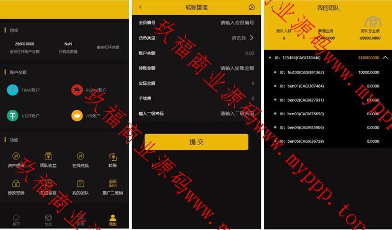 虚拟币投资理财分红源码,购买币种套餐进行投资理财。支持静态分红、二级分销(销售奖)、分红奖(团队奖)、管理奖、辅导奖。支持币种之间进行比例兑换,支持会员之间进行转账。