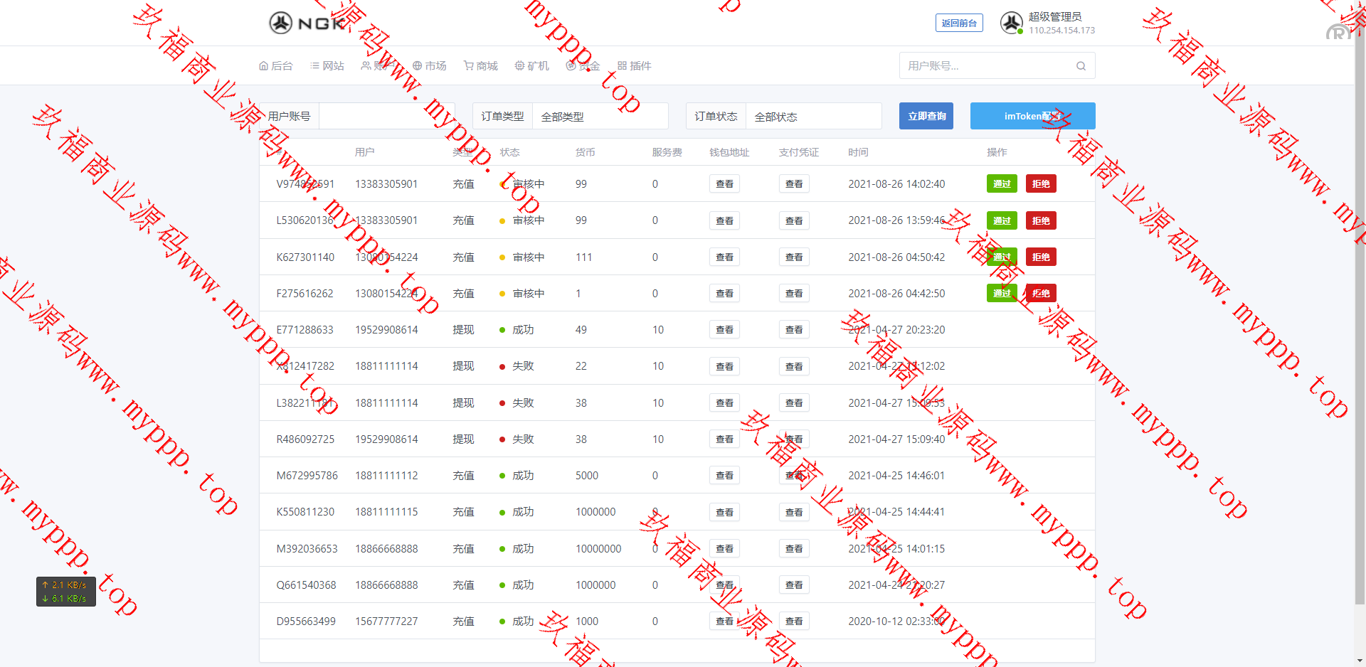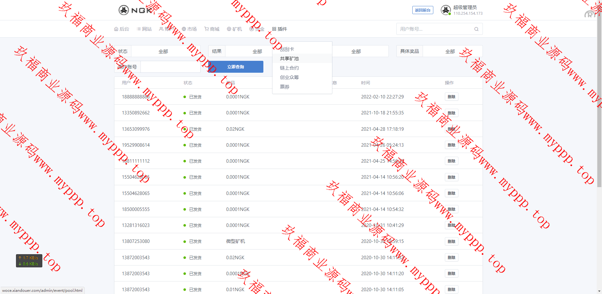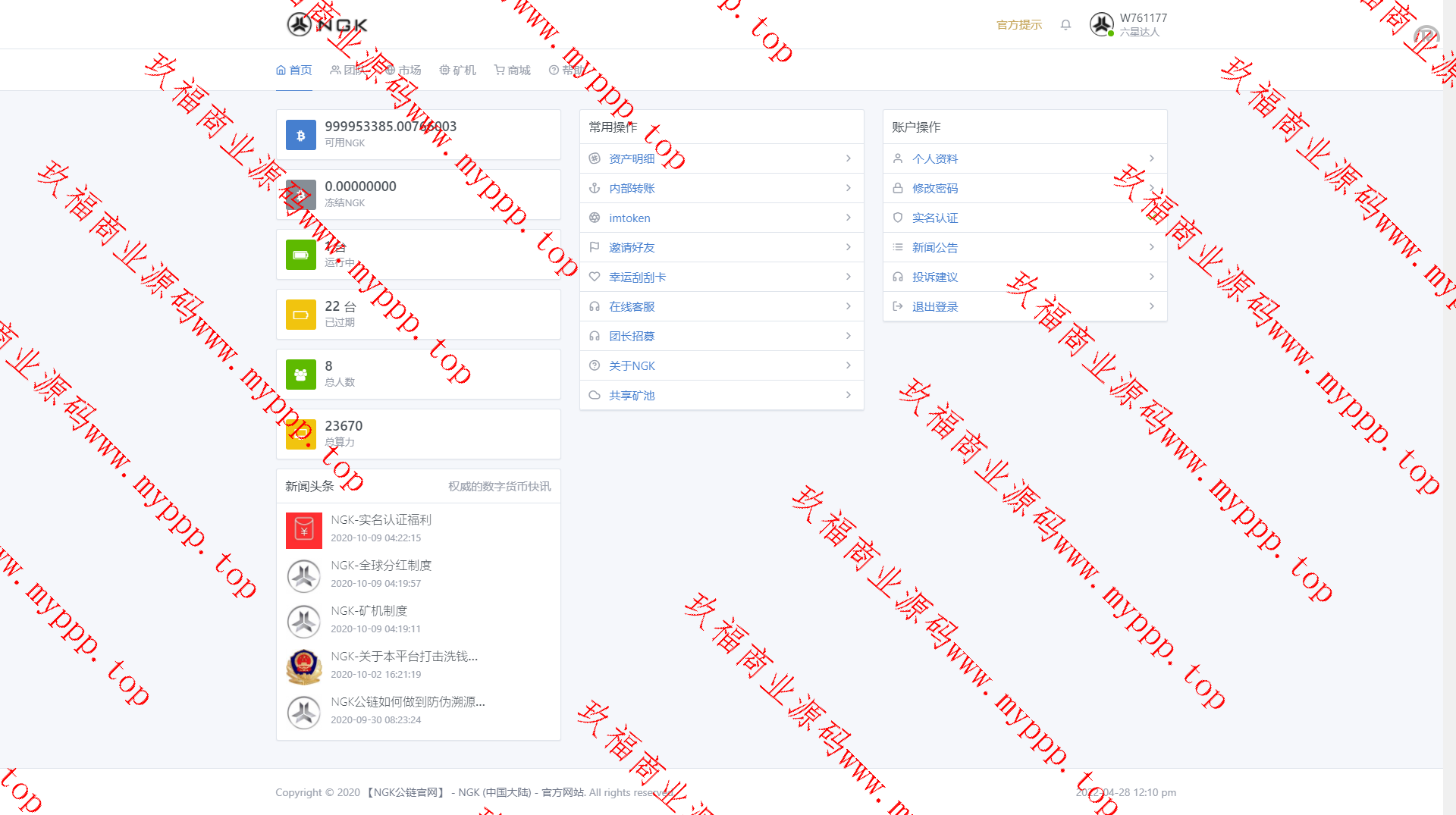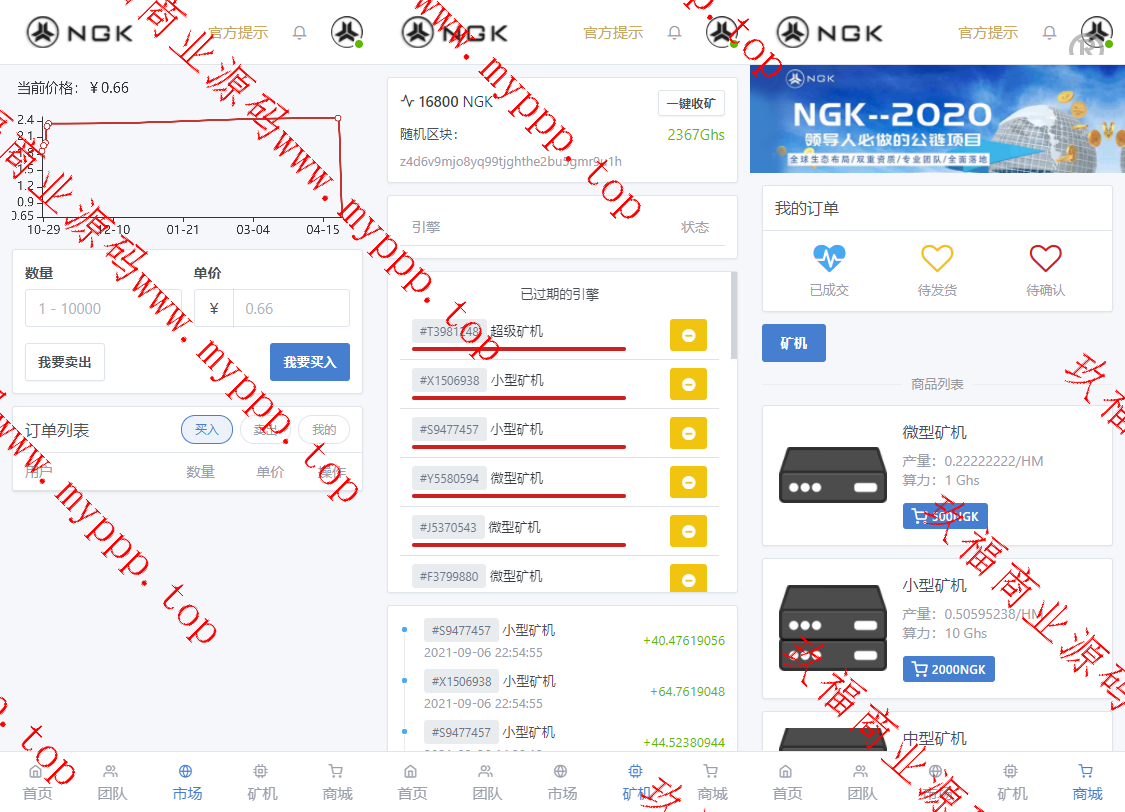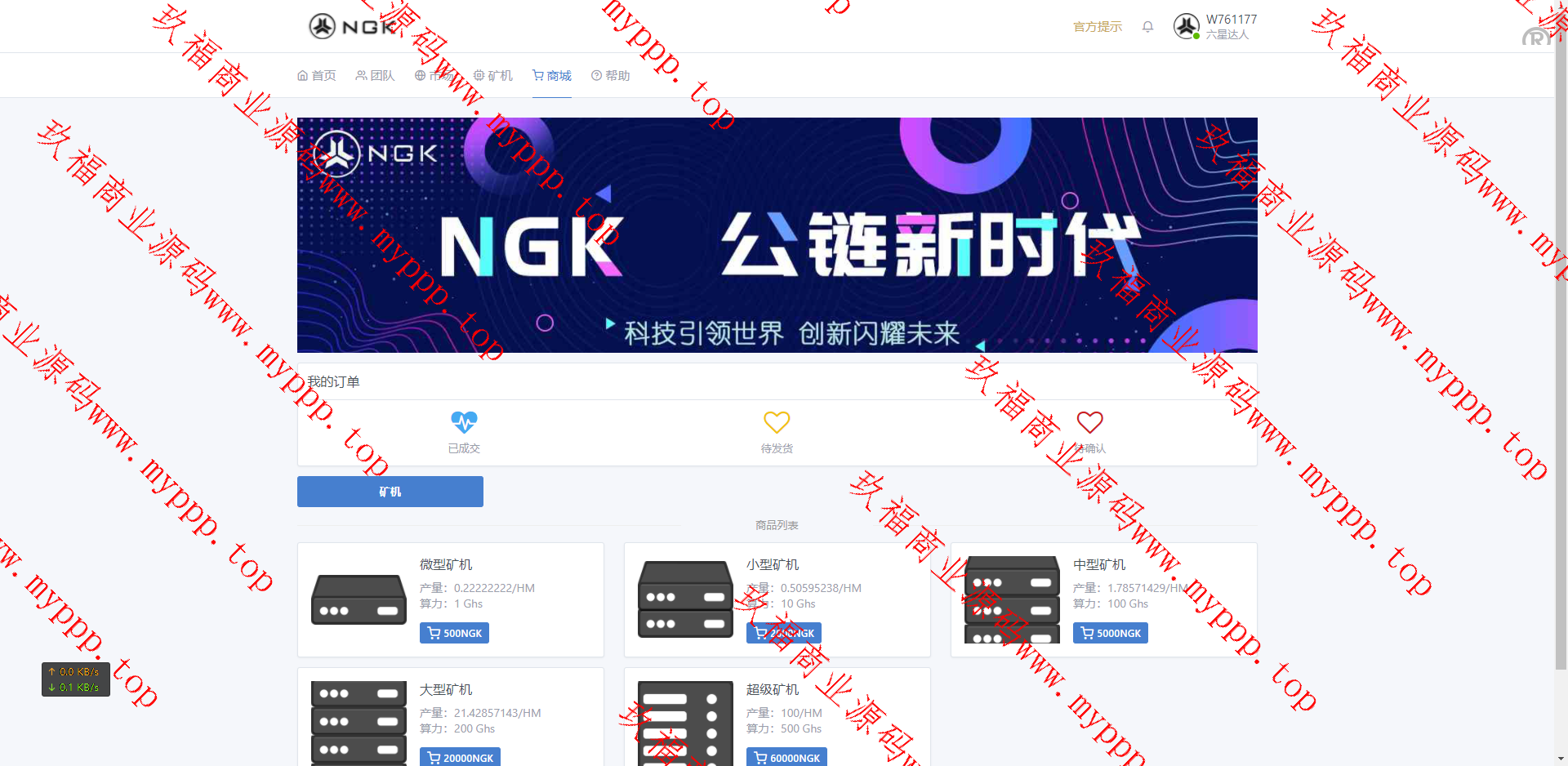 thinkphp6+mysql开发的NGK矿机区块链挖矿系统