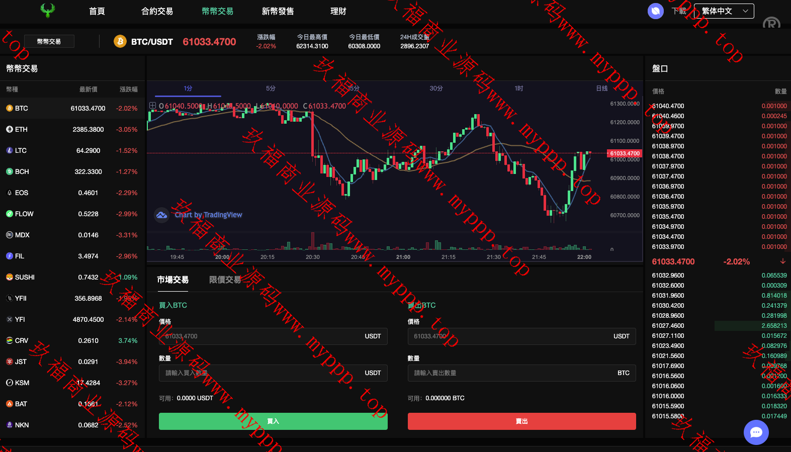 系统功能很全功能支持:币币交易、合约交易、秒合约交易、c2c、认购、理财等
