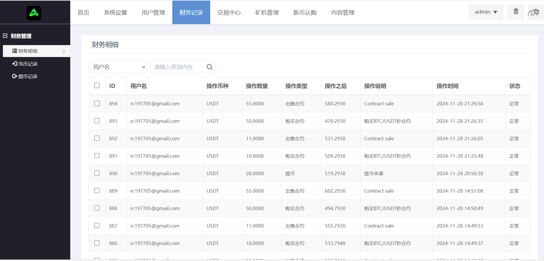 充值记录可以筛选是管理员充值还是用户自己充值的