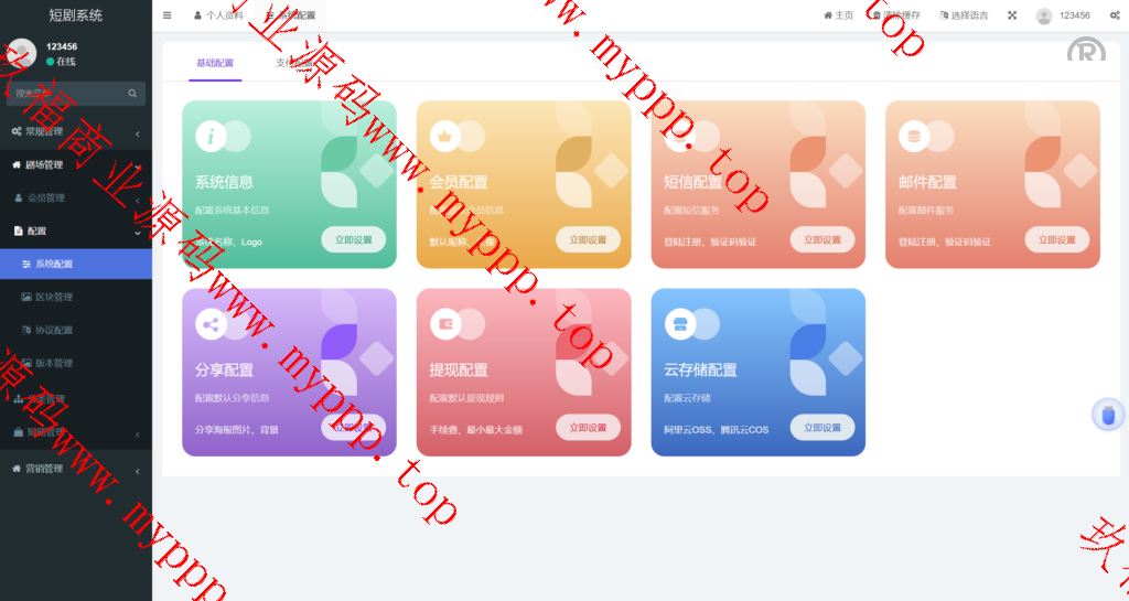 7.存储设置支持阿里云、腾讯云云存储,推荐设置因为图片视频占空间内存较大。