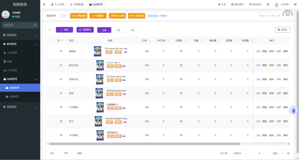 1.我们系统内置了中文、繁体、英语、泰语、西班牙语、阿拉伯语、越南语其他语言可自行添加