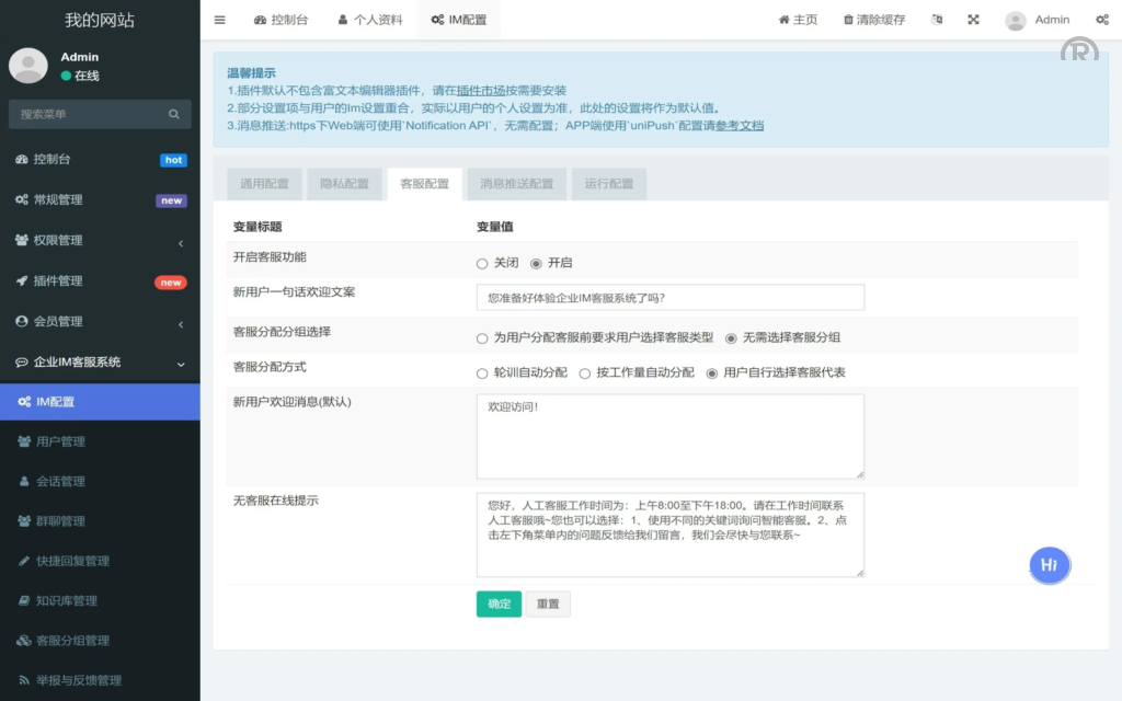 一款即时通讯和客服系统、支持会员、管理和游客相互之间的即时通讯、群聊、支持多客服(不限坐席)、智能客服、APP离线消息推送、历史消息。 提供全部无加密服务端源码和前端源代码,独立部署,不受限制。