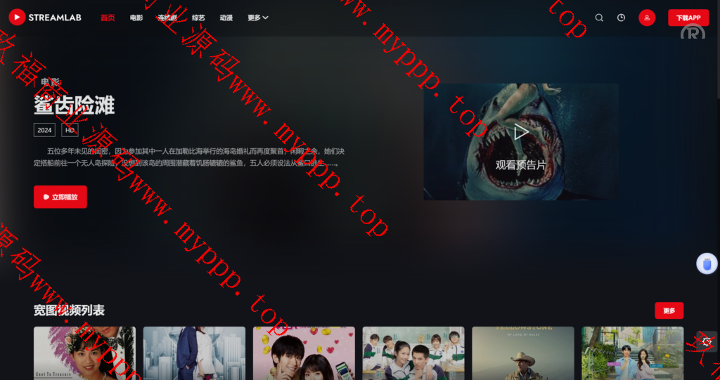短视频电影直播多功能主题第二套Streamlab主题是一套绝对大气的响应式模板,