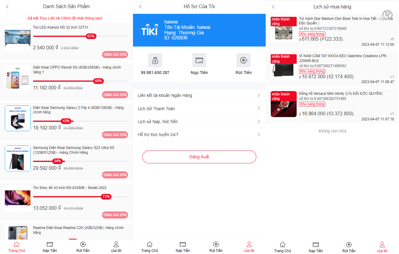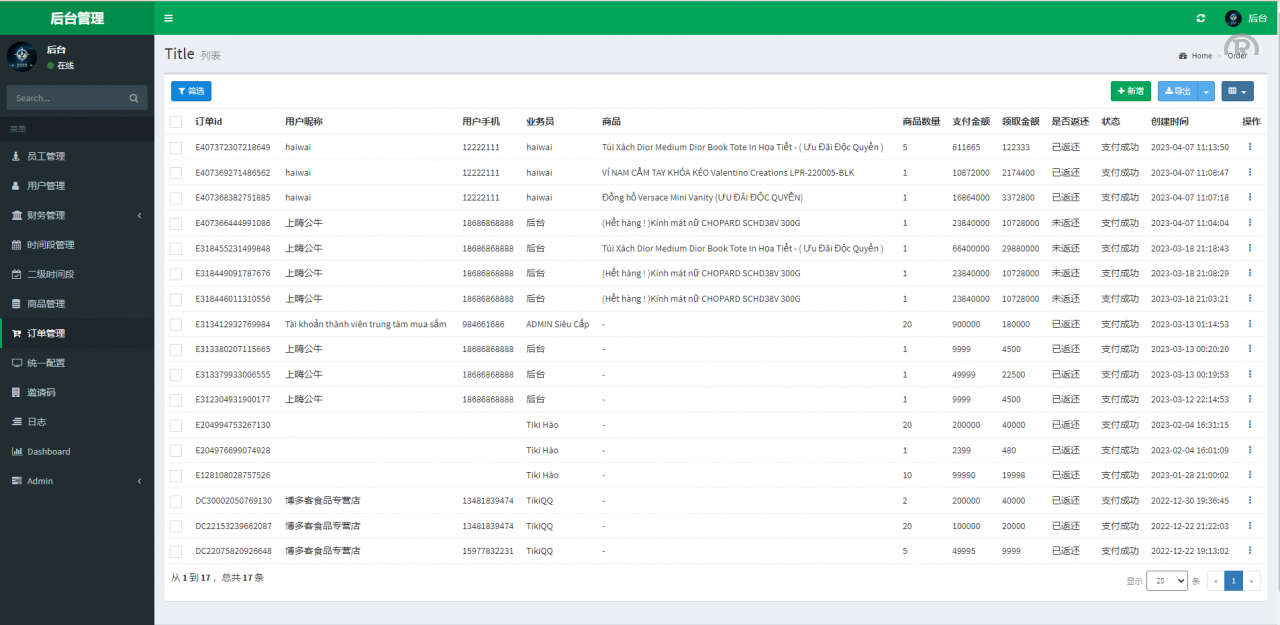系统是别人专门为越南市场的TIKI奢饰品投资返利系统