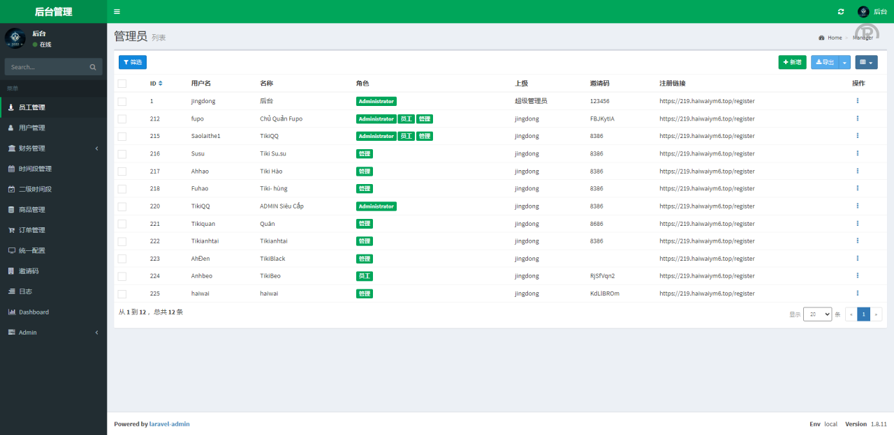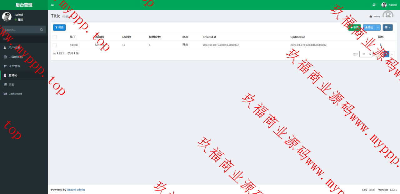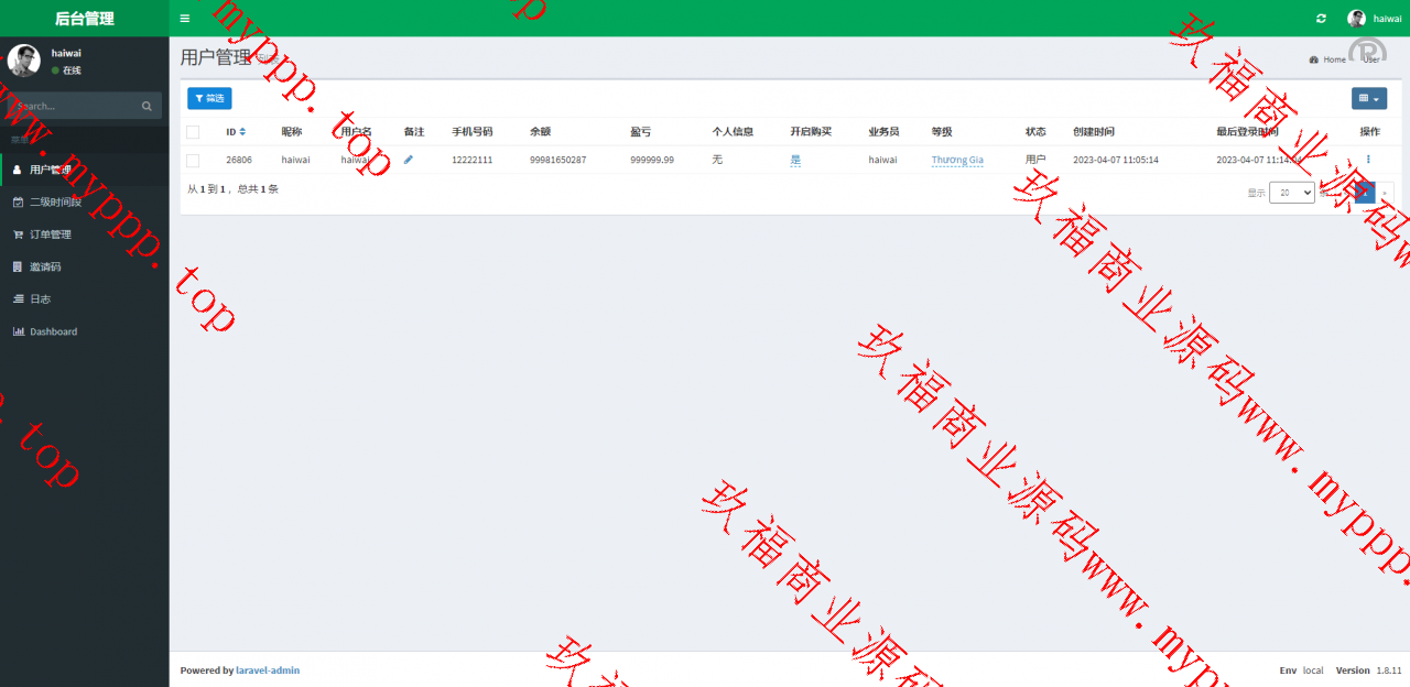系统采用Larave框架,带权限代理后台,可单独生成邀请码,后台可设置购买权限、返现时间、持续购买