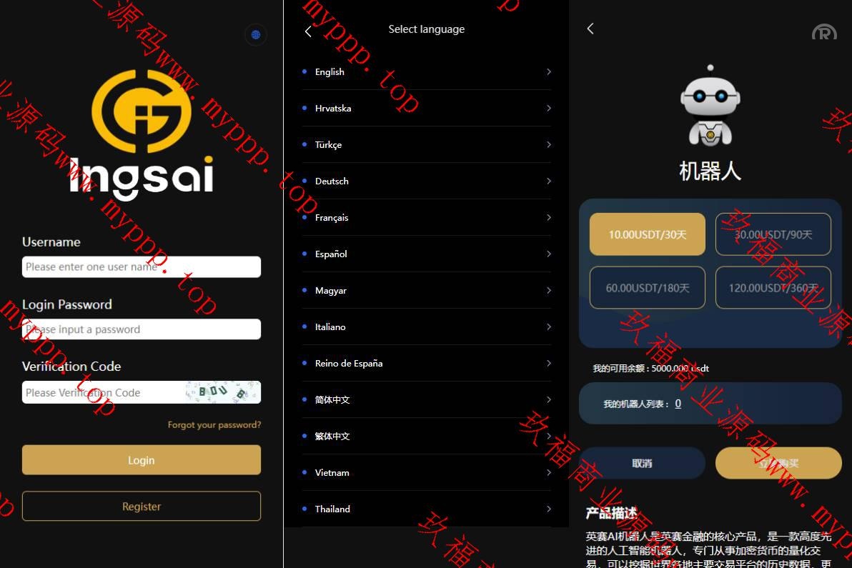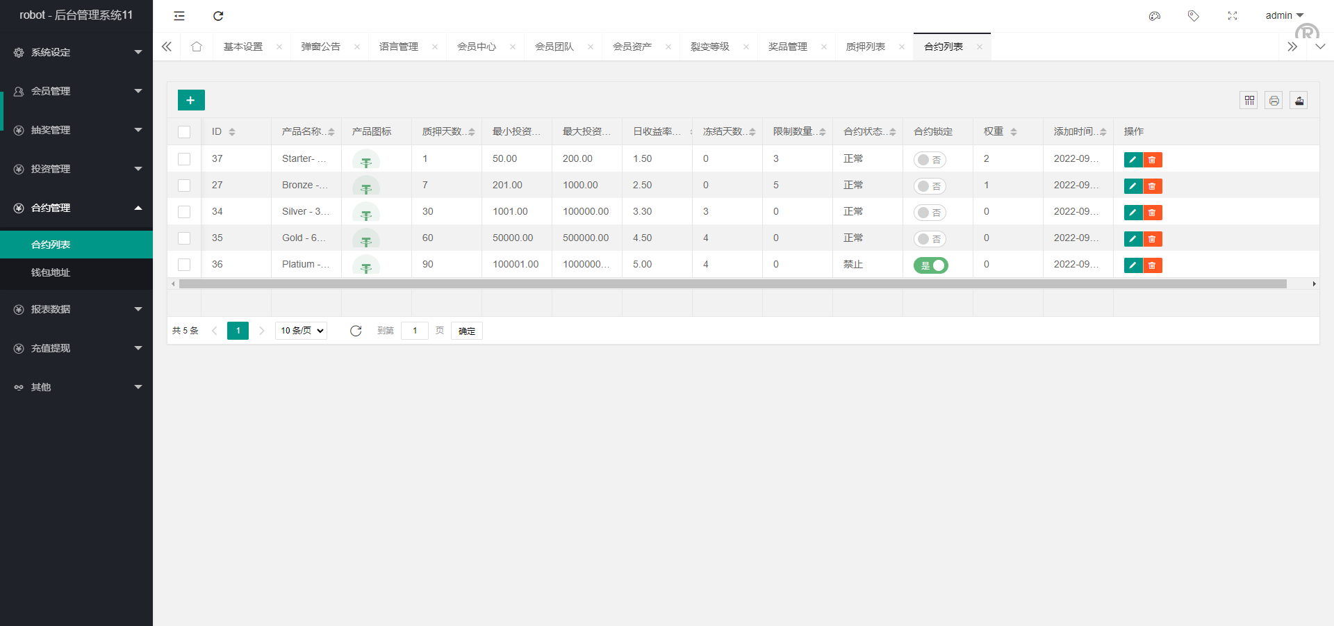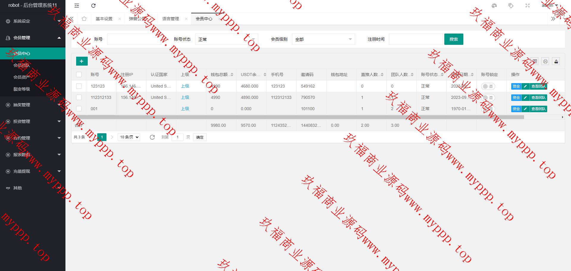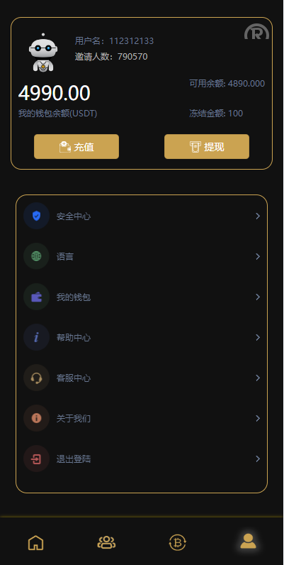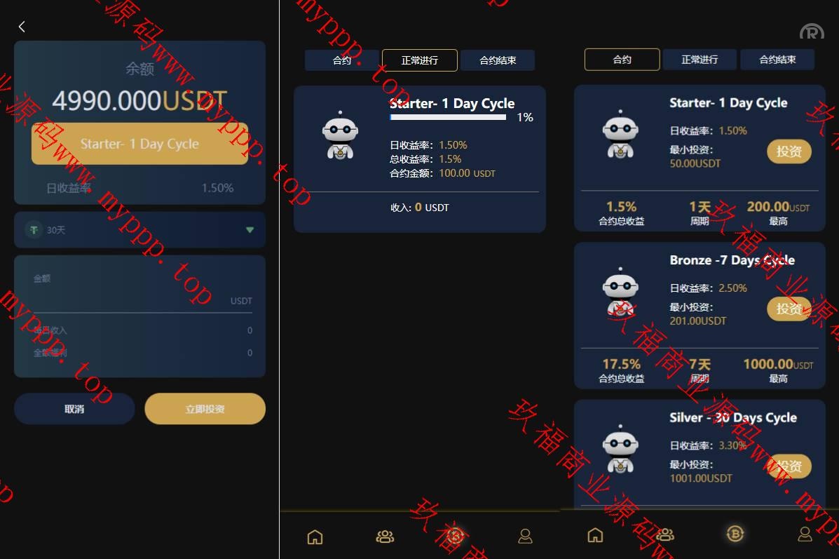 系统是机器人投资购买,然后合约投资购买,带邀请分销,前端多国言默认中文隐藏