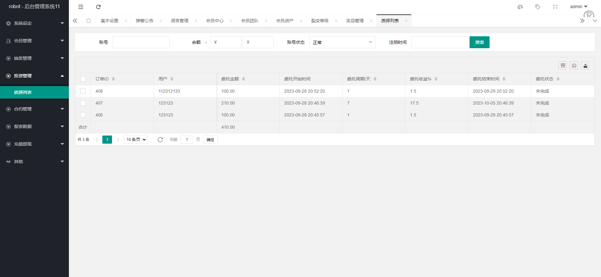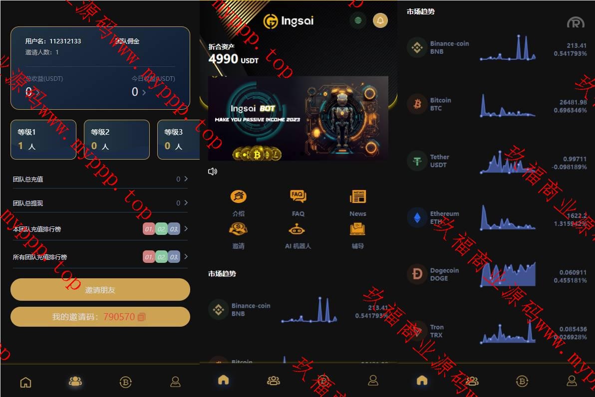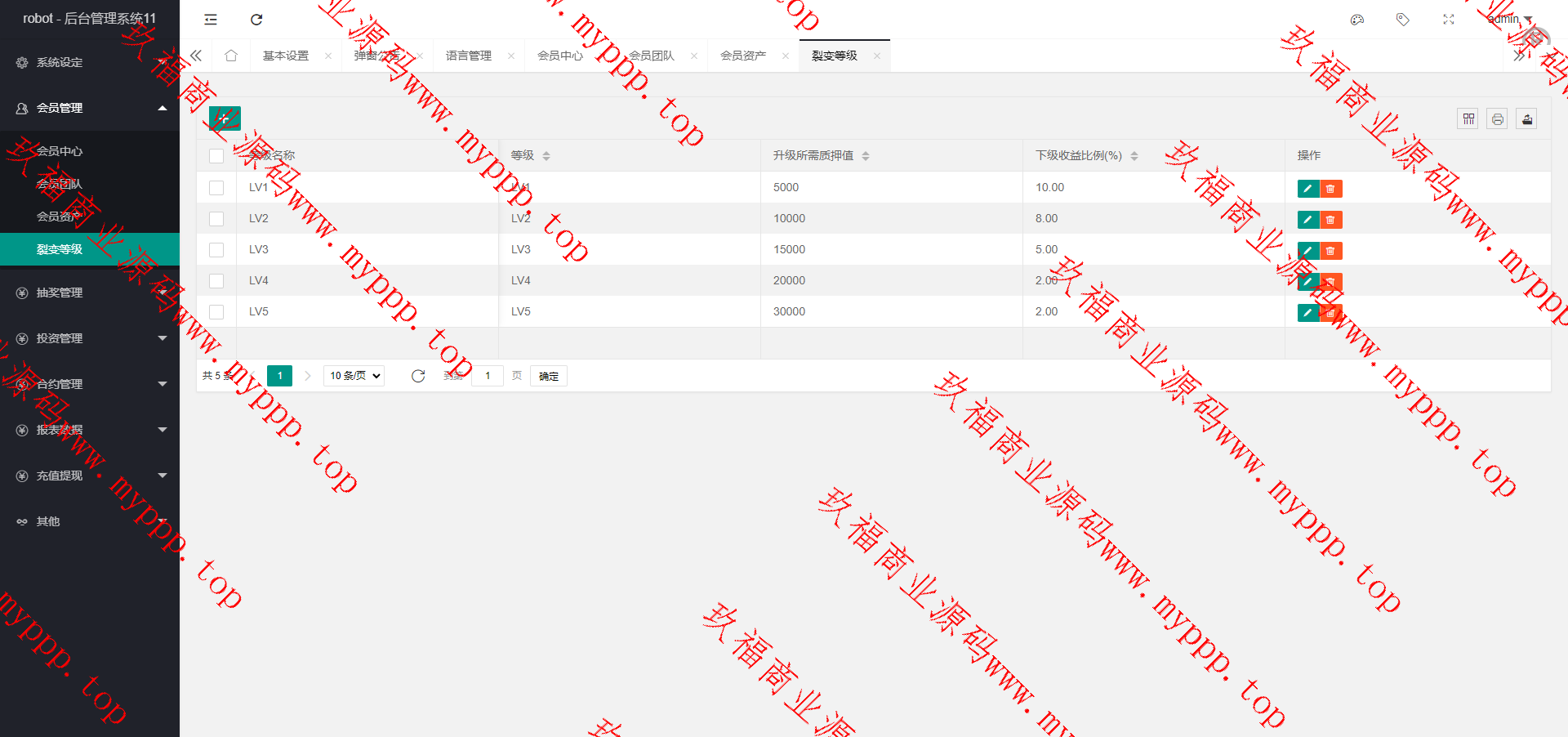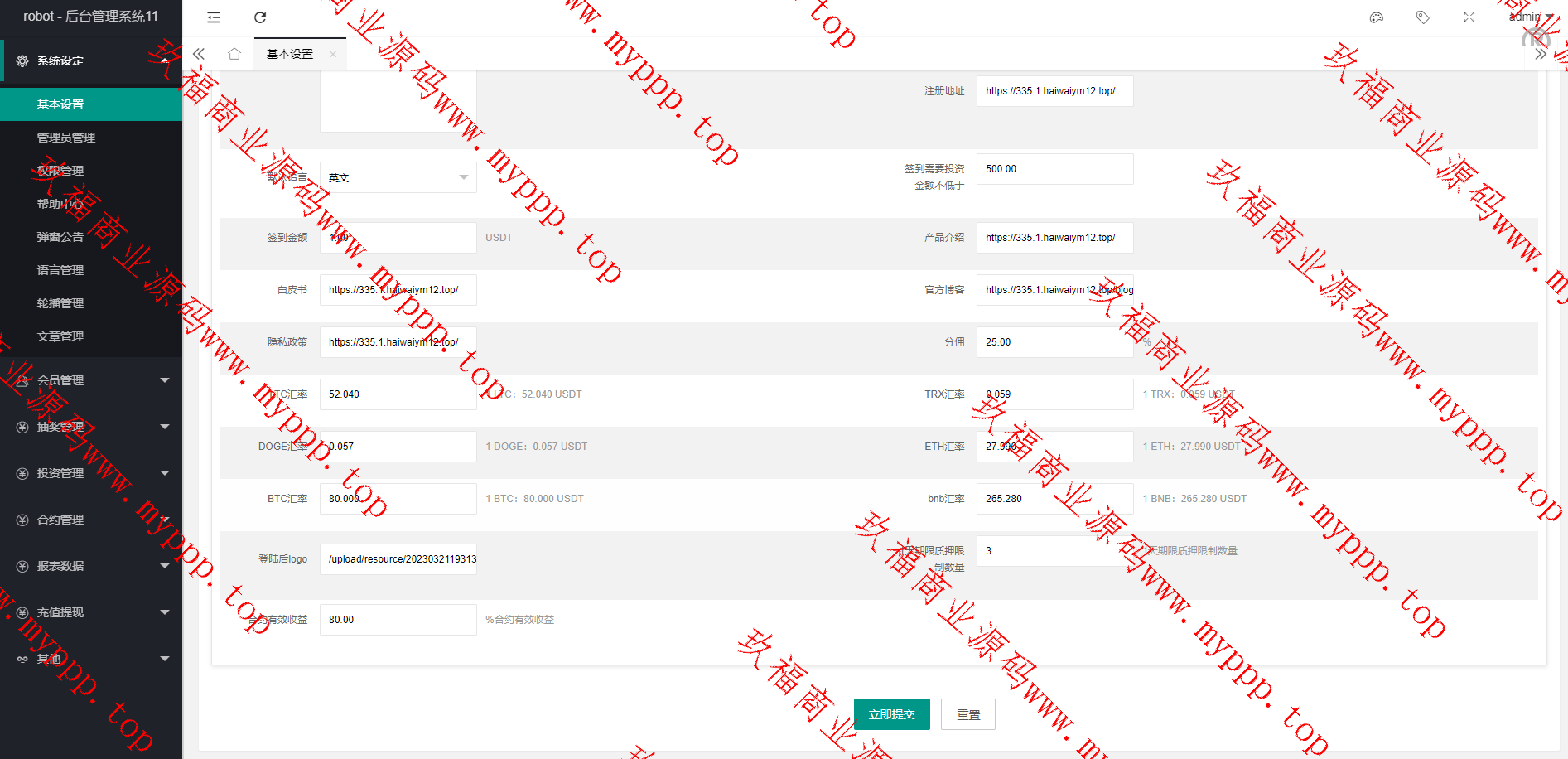 系统是机器人投资购买,然后合约投资购买,带邀请分销,前端多国言默认中文隐藏