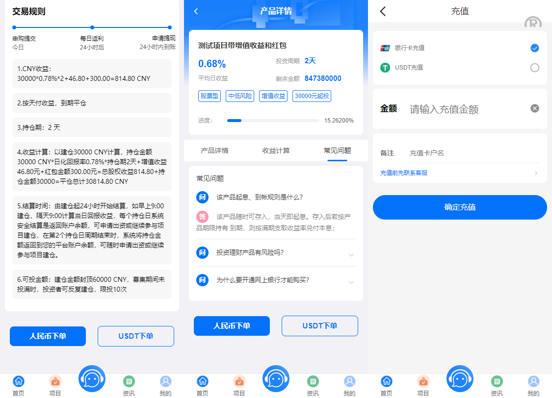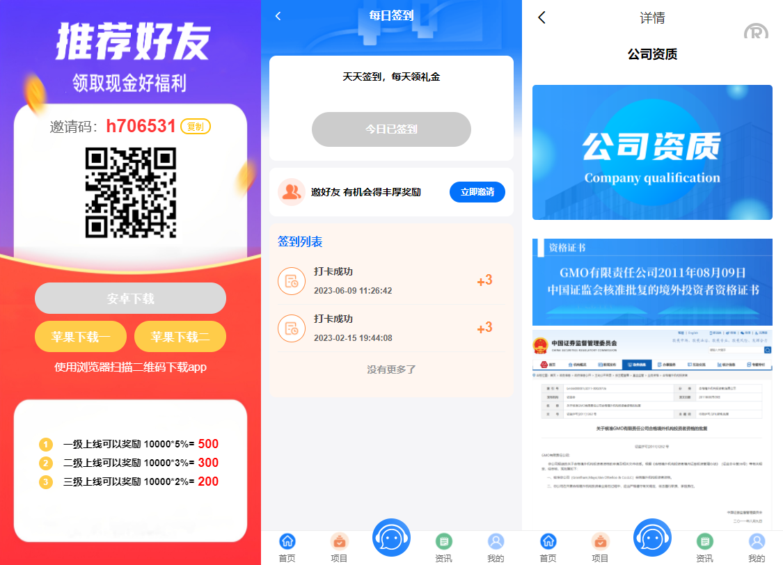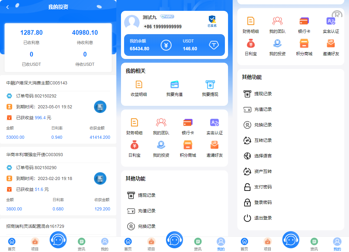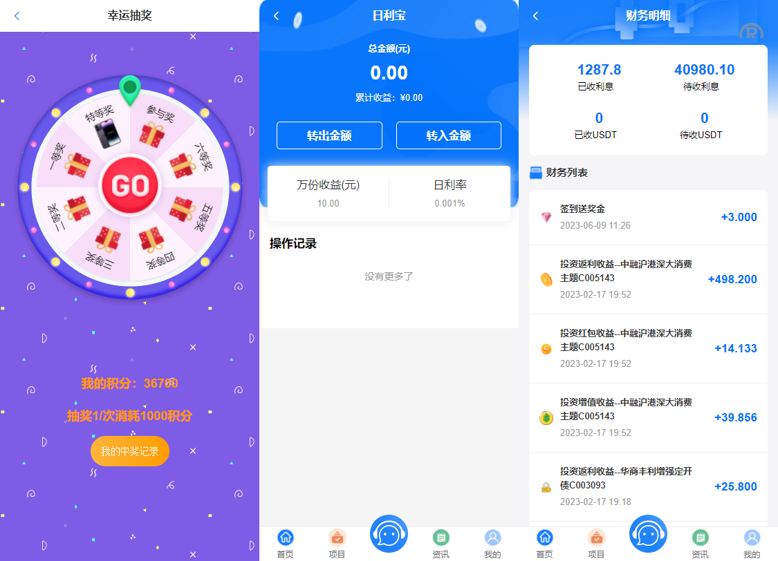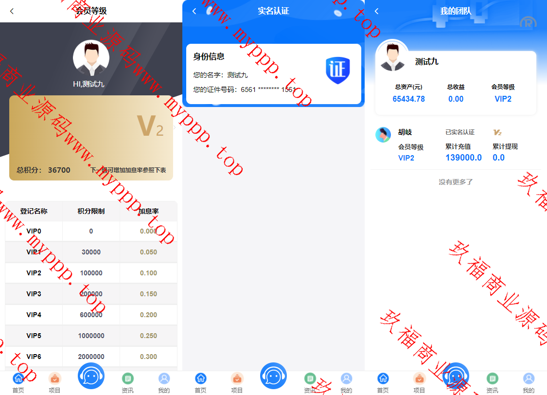 签到、会员等级、实名认证、团队分销、抽奖、积分商城、日利宝、项目投资等功能!