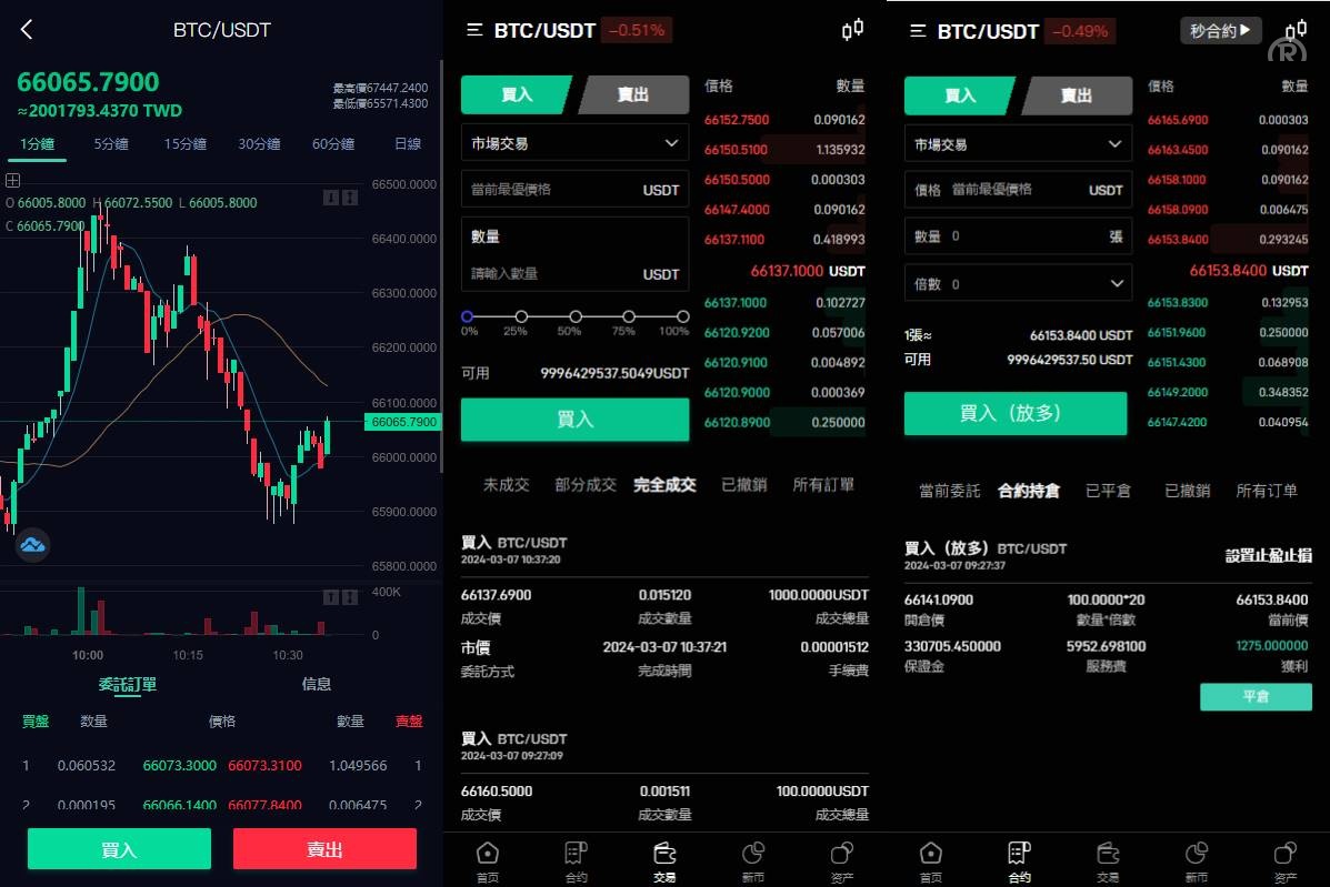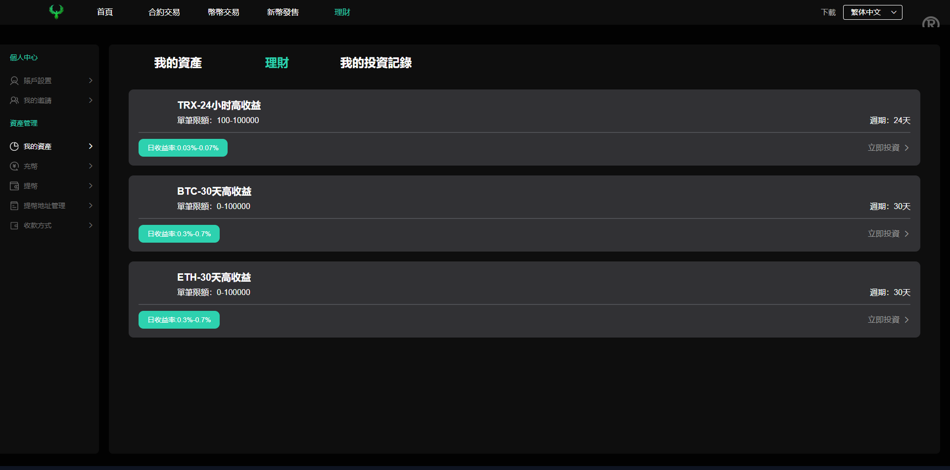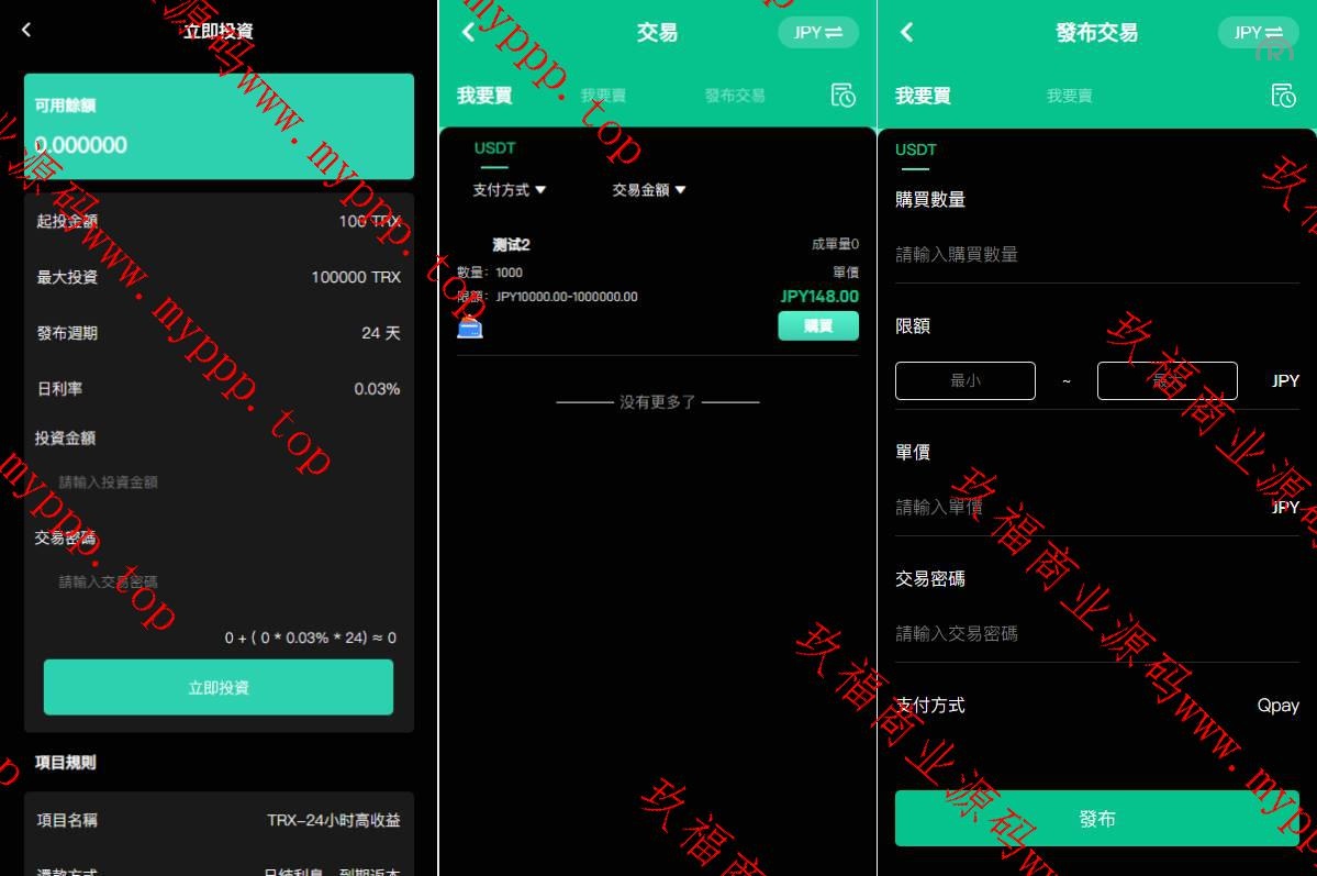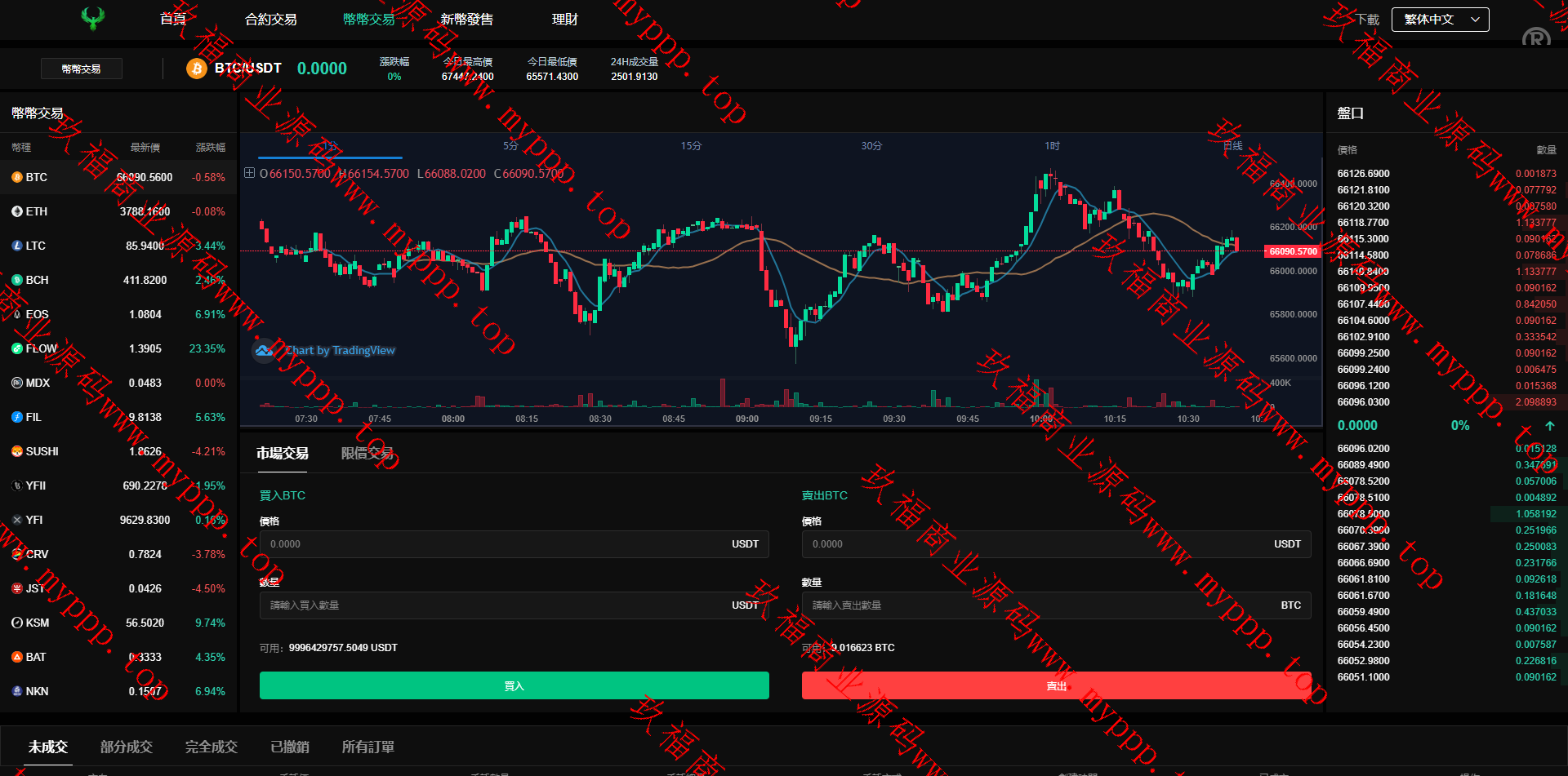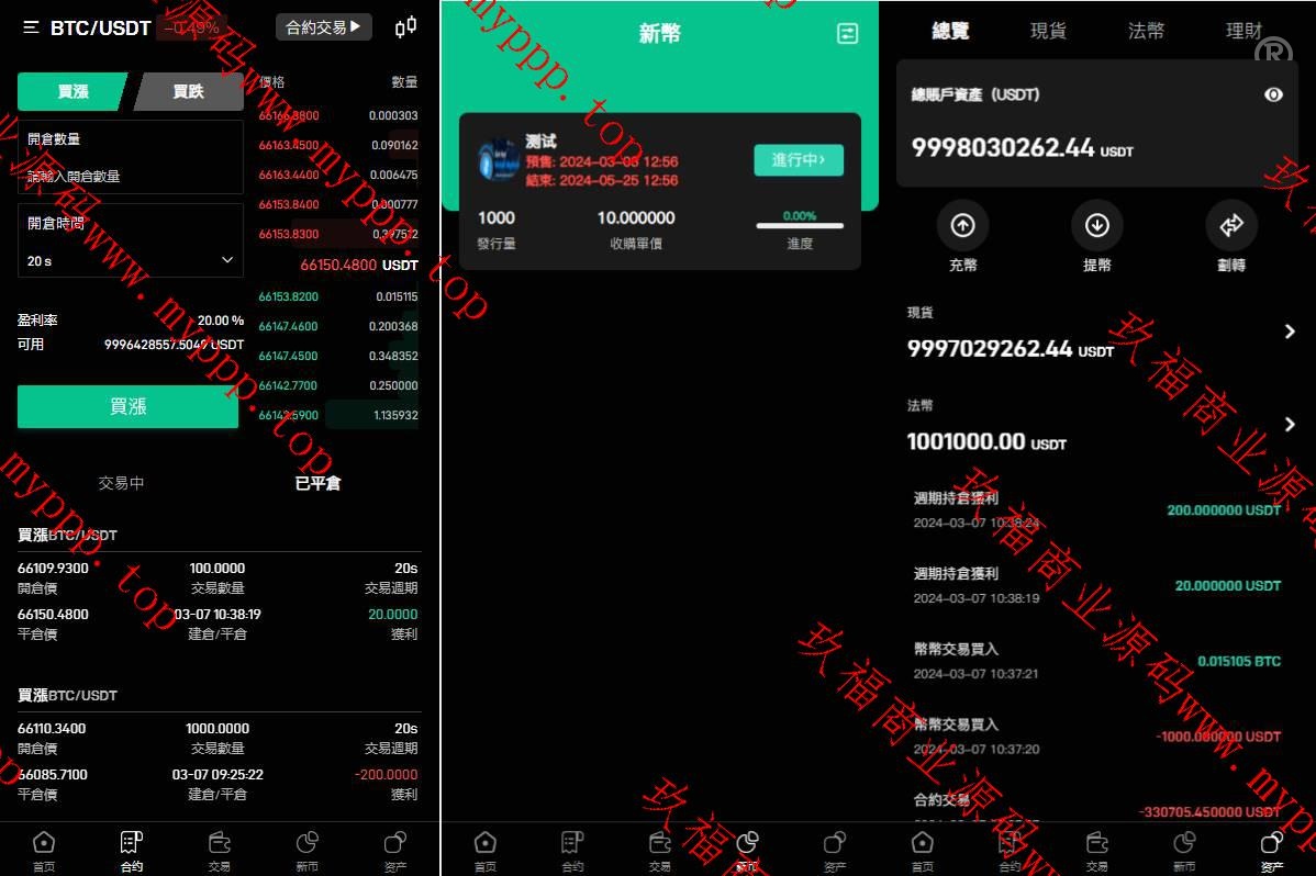 系统功能很全了,ui也不错功能支持:币币交易、合约交易、秒合约交易、c2c、认购、理财等