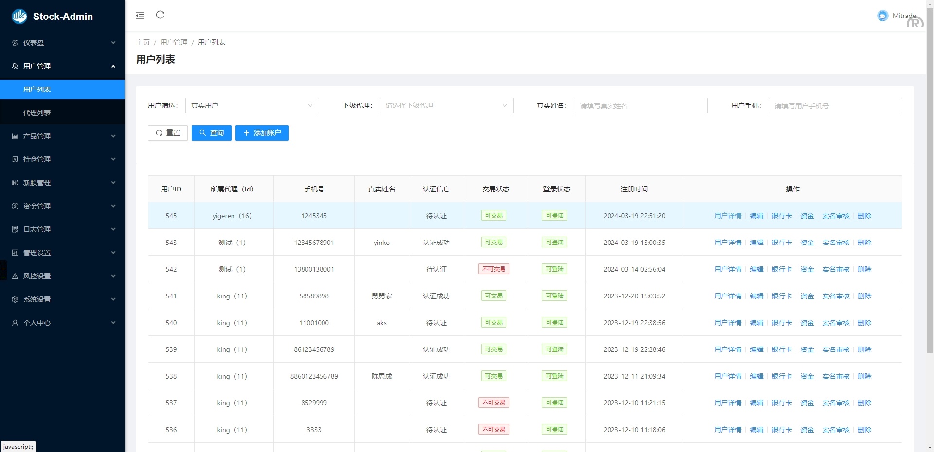 全系股票交易系统,开发语言是Java框架结构spring前台vue构架