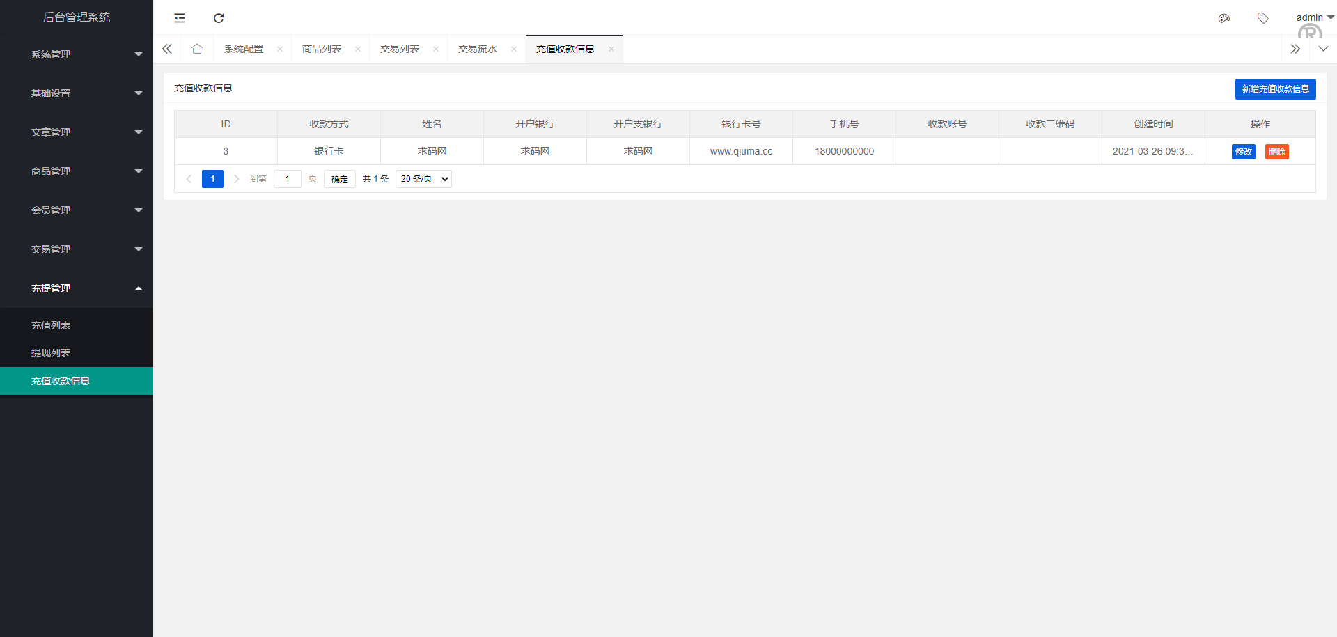 支付管理:支付订单 支付接口 充值卡管理 生成充值卡