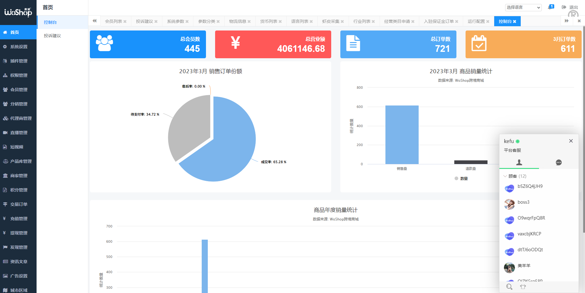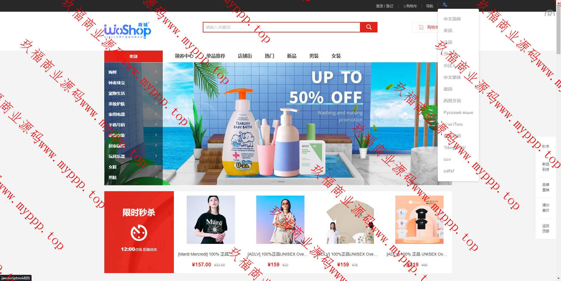 WoShop多商户跨境电商商城源码,多国言、国际支付、国际物流,APP+小程序+H5