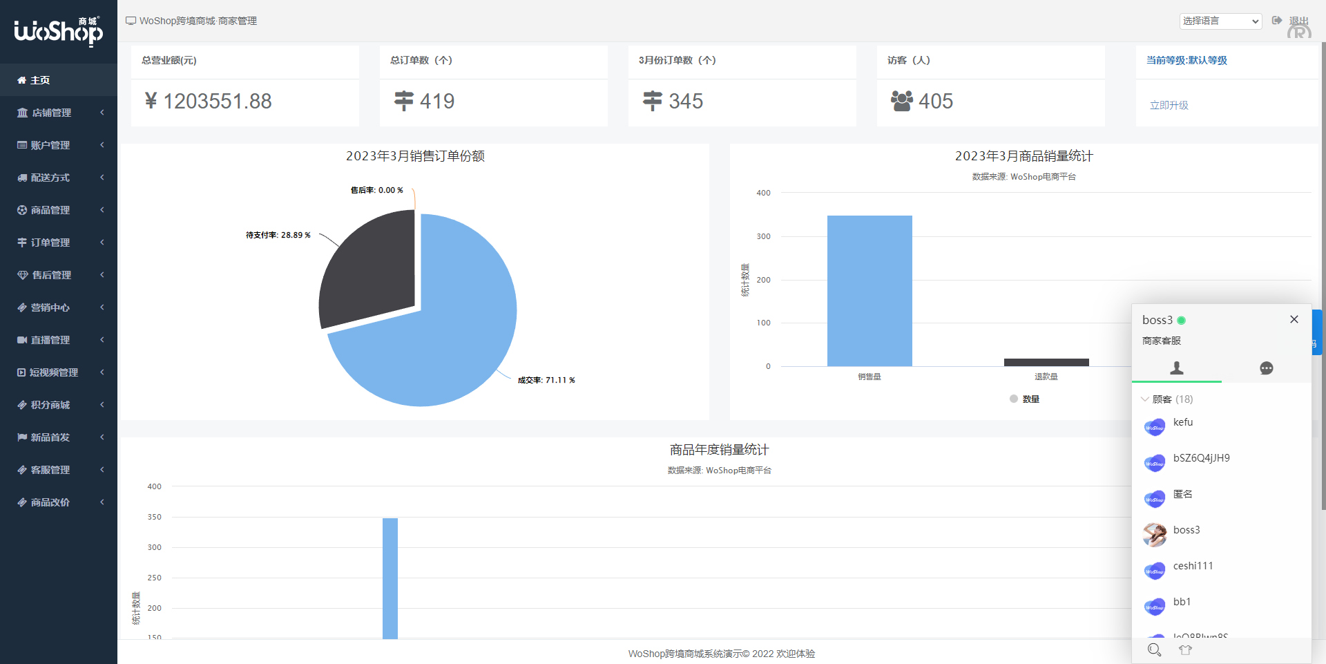 介绍:WoShop多商户跨境电商商城系统将传统的分销、积分、拼团等传统销售模式和直播带货、短视频带货等新型电商营销完美融为一体,专注技术,支持二次开发,专为用户、技术商提供跨境电商技术解决方案。
