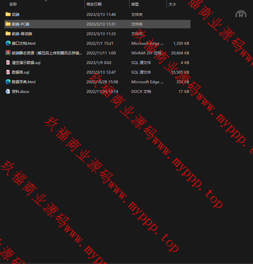 购买之后发送API开发文档,部署文档,使用文档,数据字典,前、后端源码,数据库