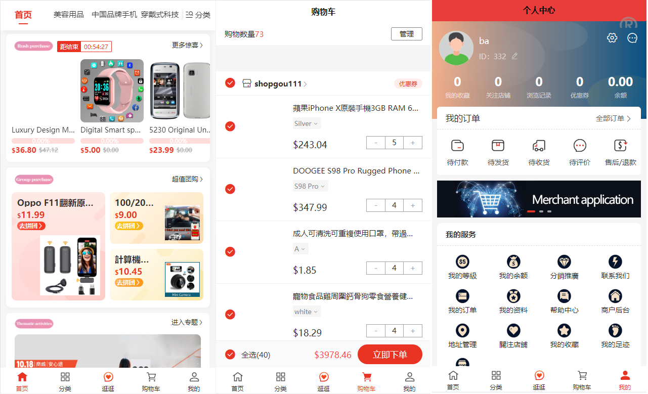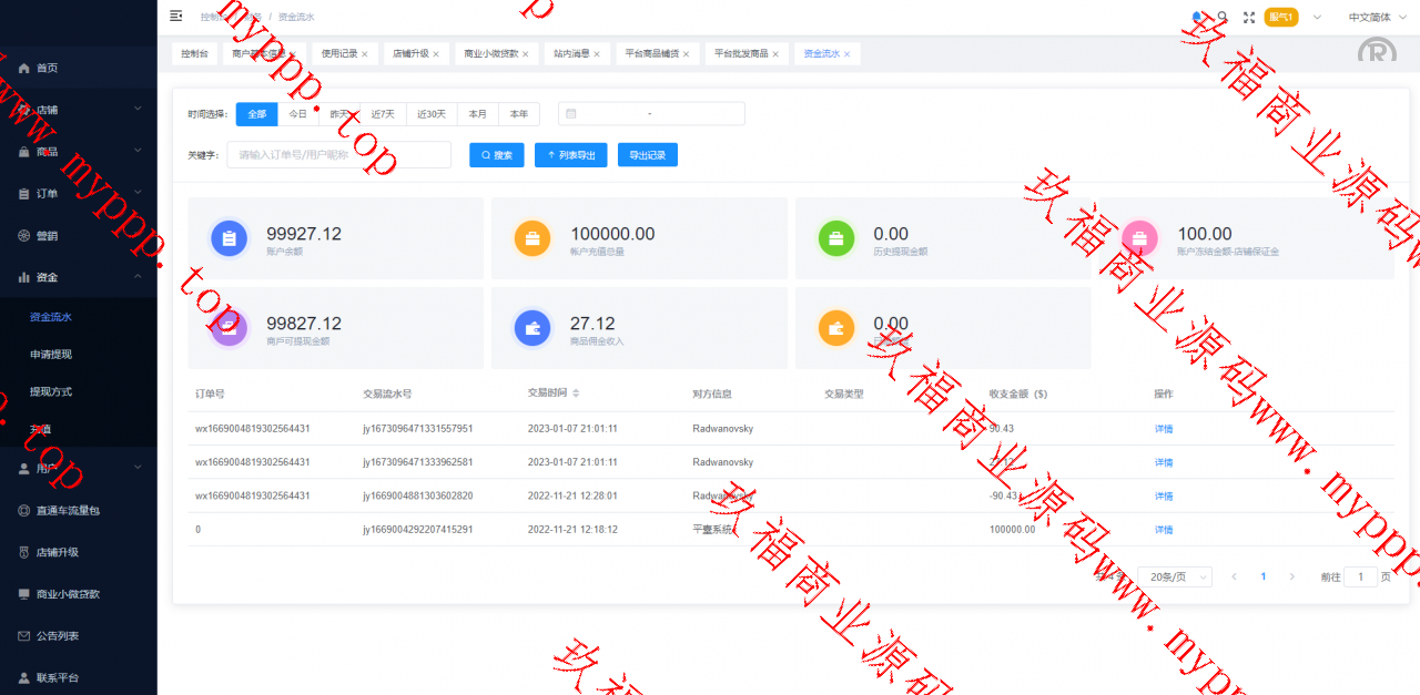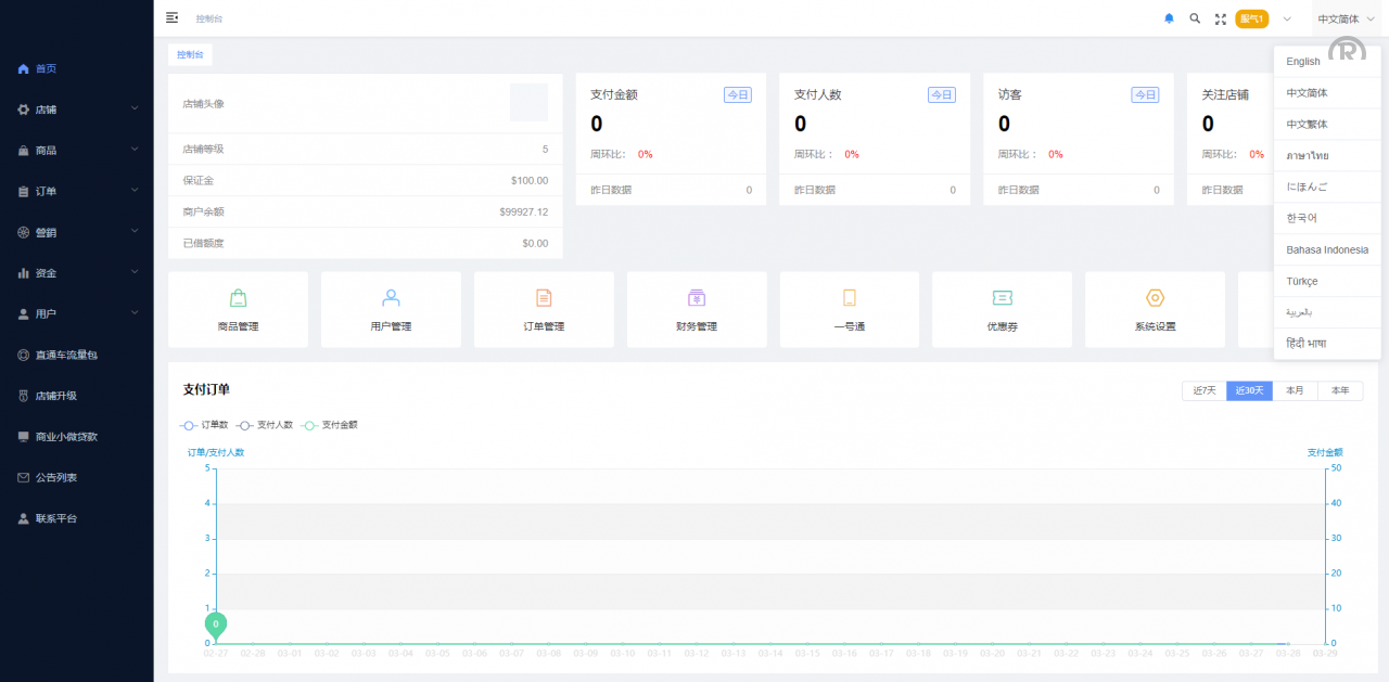 系统特点关键词:多商户入驻、商品一键铺货、进货差价、平台代发、商品采集、店铺保证金、USDT充提、店铺虚拟访客关注加购数据、一键批量注册用户、批量下单爆单、定时下单、自建物流信息等