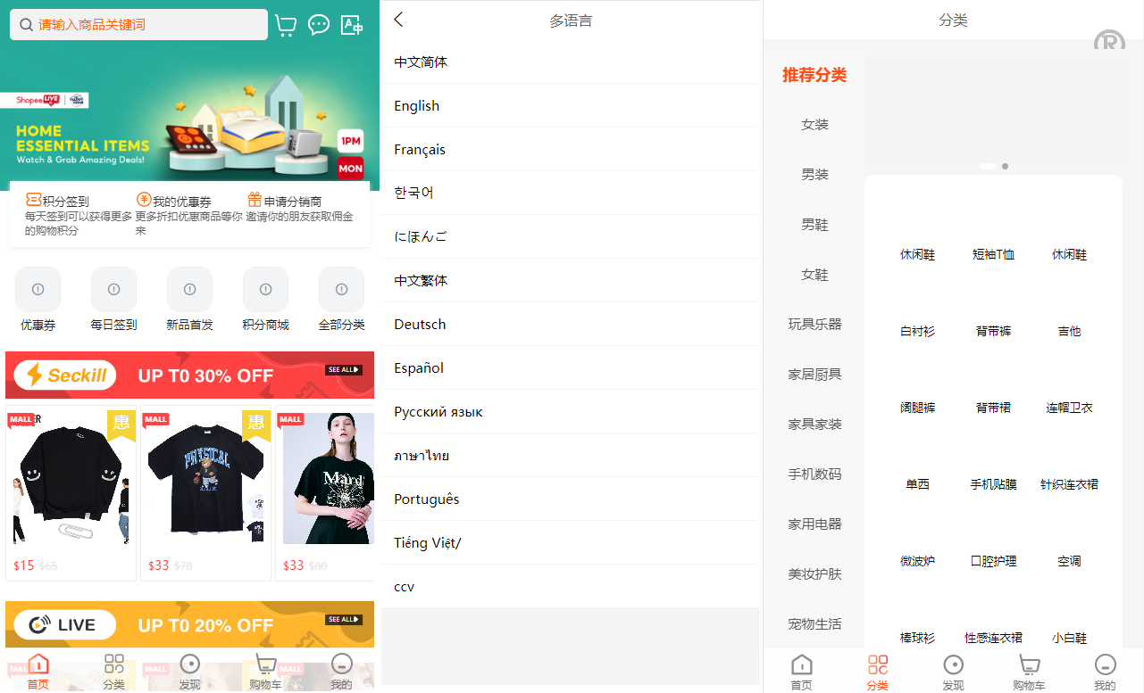 系统独立开发,系统流畅;前后端全开源、无加密;商城集短视频、直播、社交、分销、积分、多国言、国际支付、国际物流等多功能一体;
