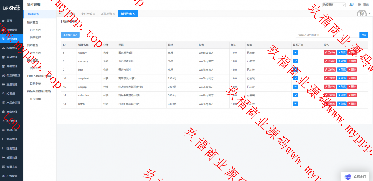 此套是是最新的全套WoShop多商户跨境电商系统,附带付费插件