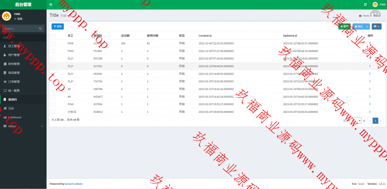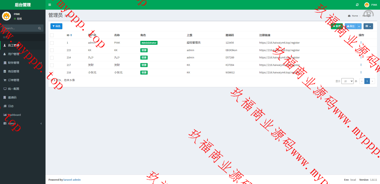 系统带权限代理后台,可单独生成邀请码,后台可设置购买权限、返现时间、持续购买