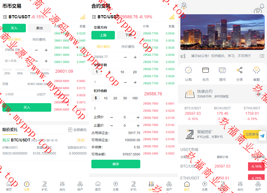 目前这是开发的第一款交易所系统,有秒交易,有合约,支持学习,不支持运行。