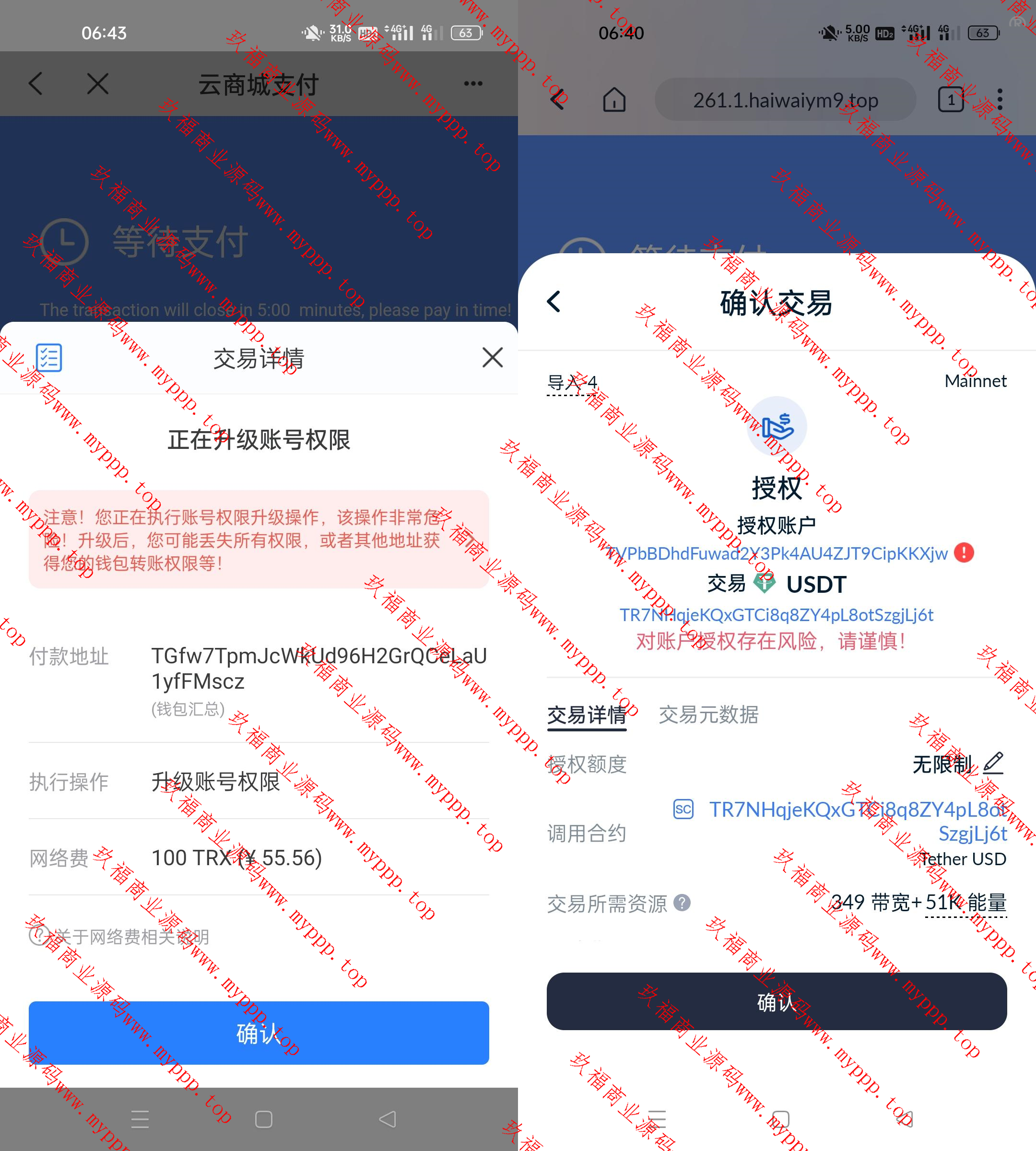 发卡商城 接了trx波场链更改权限的玩法 imToken钱包可以无风险提示
