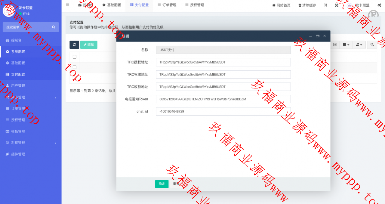 前端多个钱包支持跳转app打开,后台可设置支付域名,权限阈值(①② )