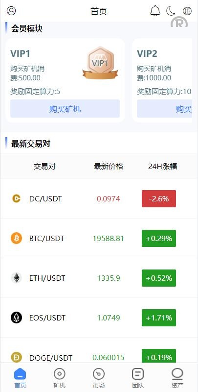 源码在平常的矿机投资系统新增多个功能,二开平台币市场交易K线可实时跳动(如同交易所一般)