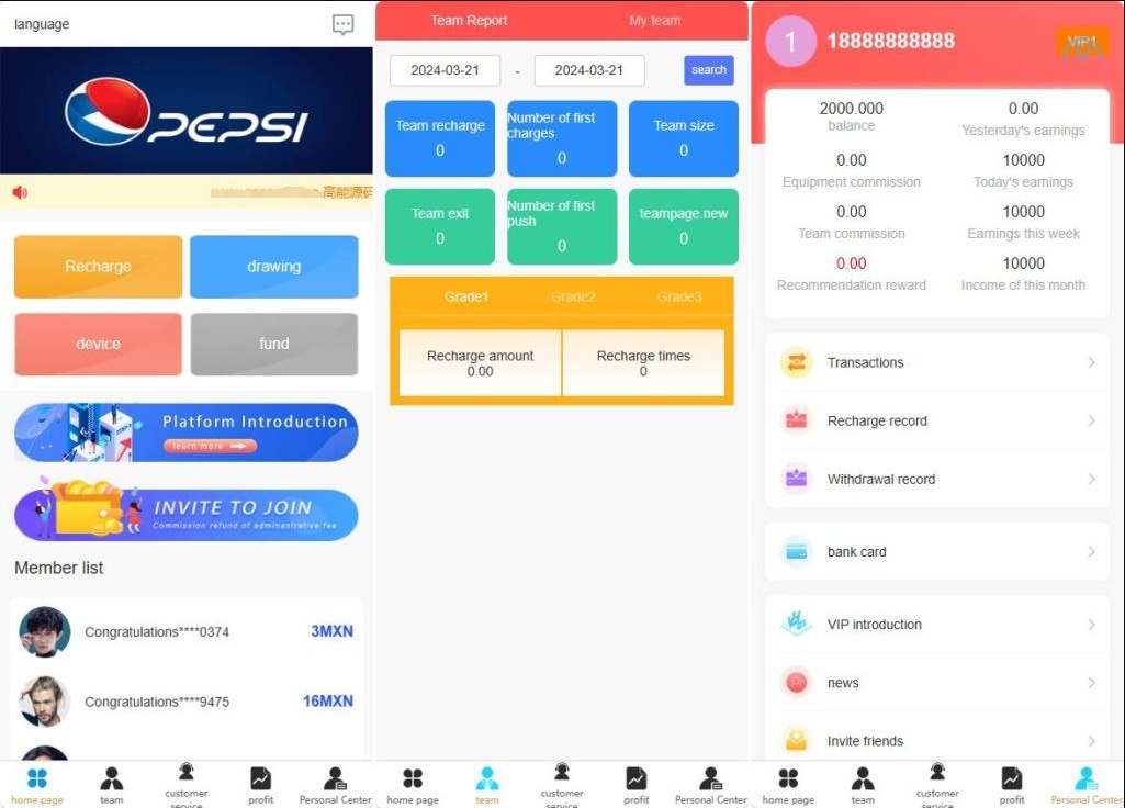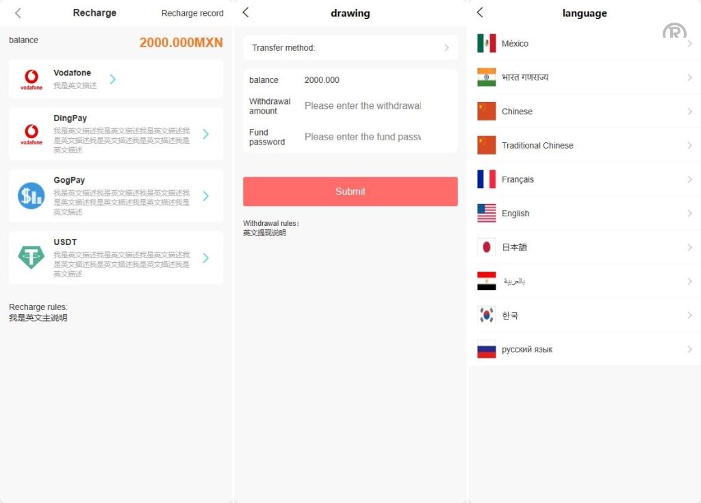 功能比较简洁只有个投资,然后一个三级分销推广的 10国语言