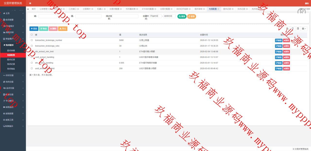 3币种管理(币种的添加设置、提币账户管理、是否、是否显示、交易对管理);