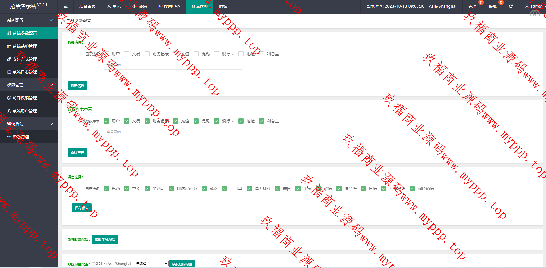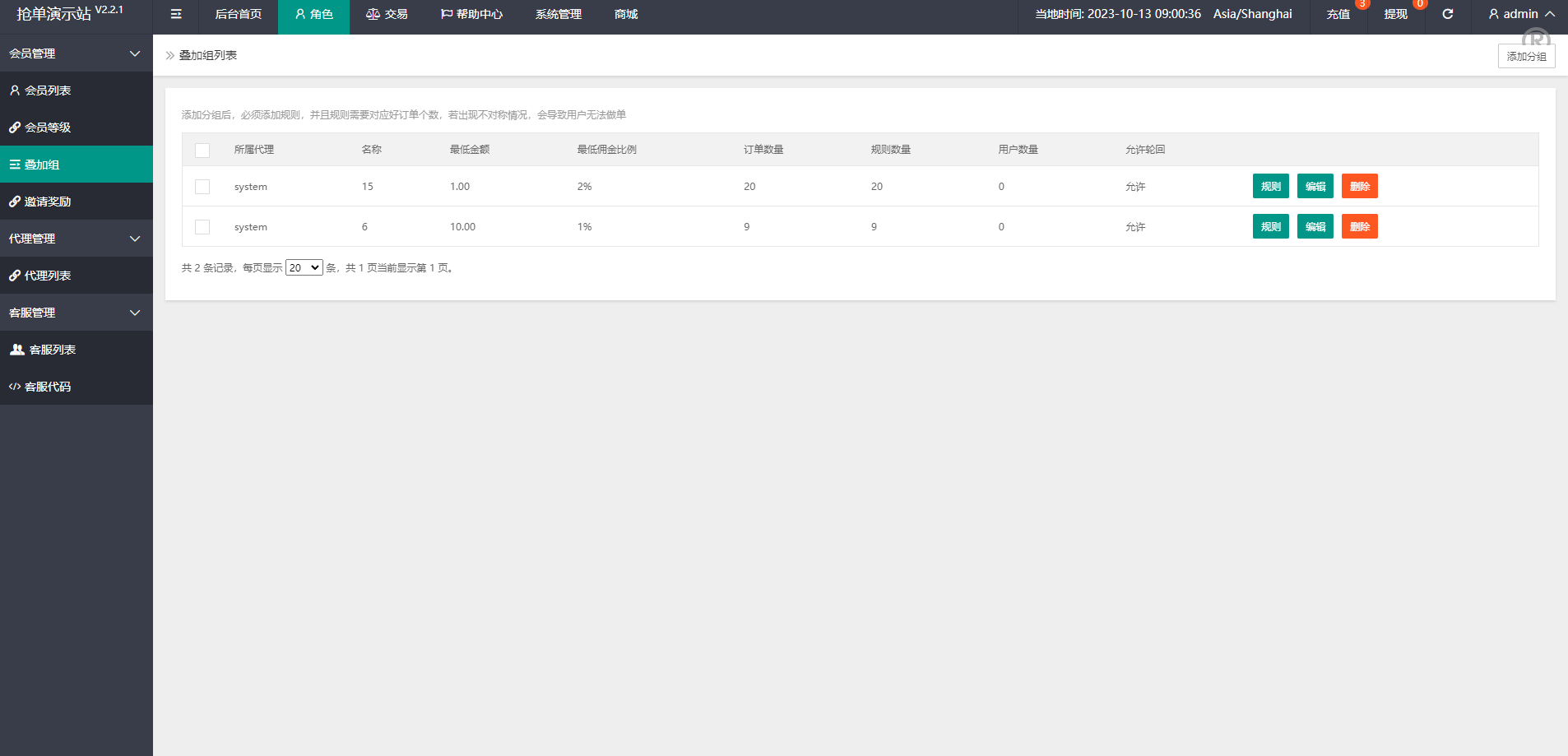 系统支预约爆单、叠加组、余额宝、时区设置等功能