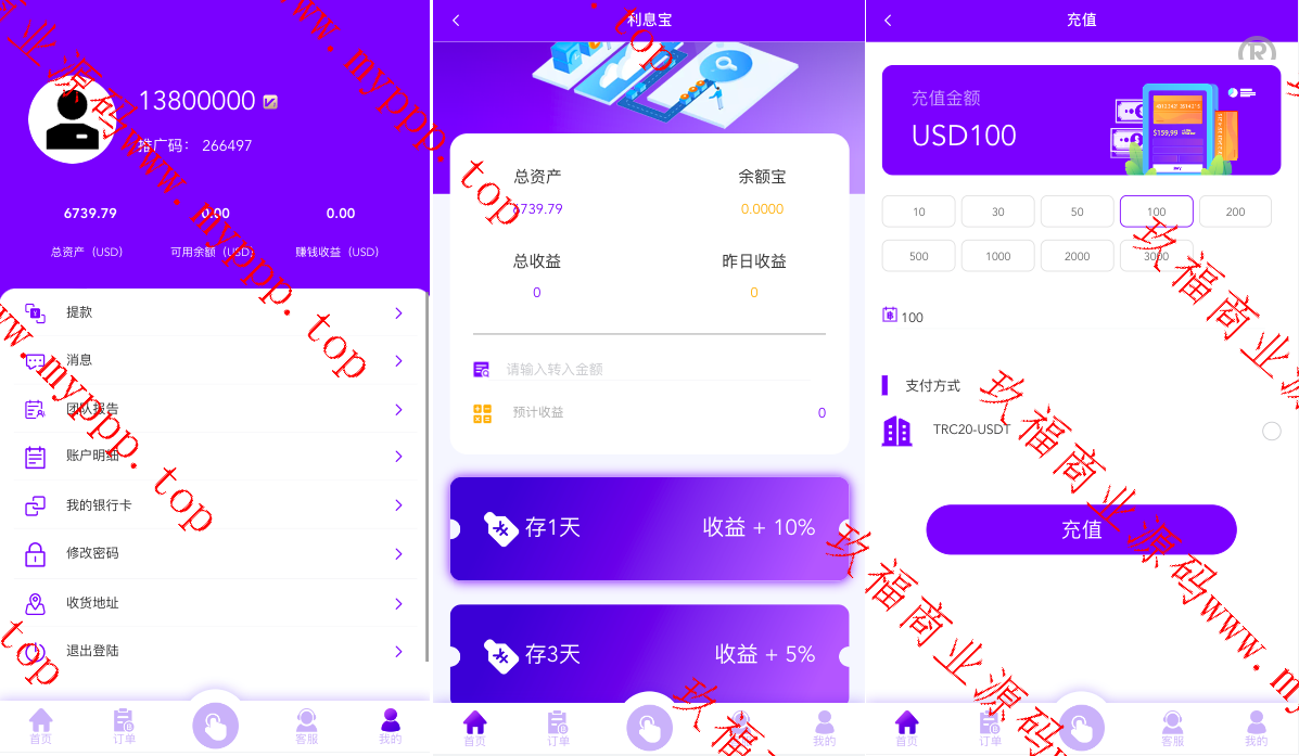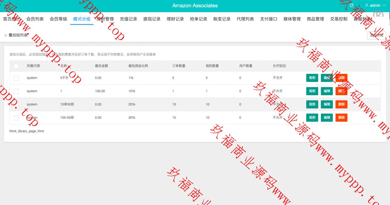 后端thinkphp框架,系统支持叠加组,打针,余额宝等功能。usdt充值,权限代理后台