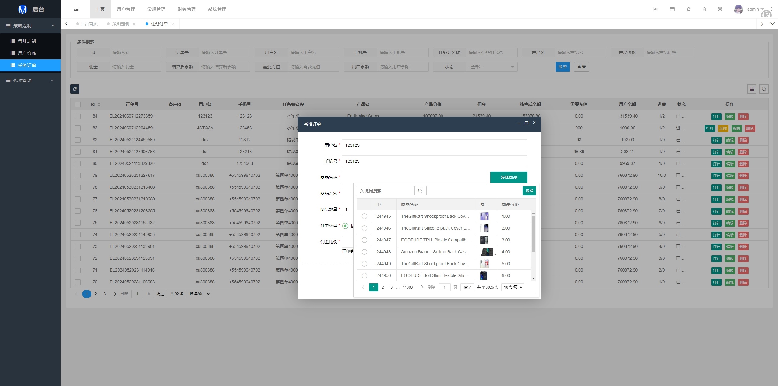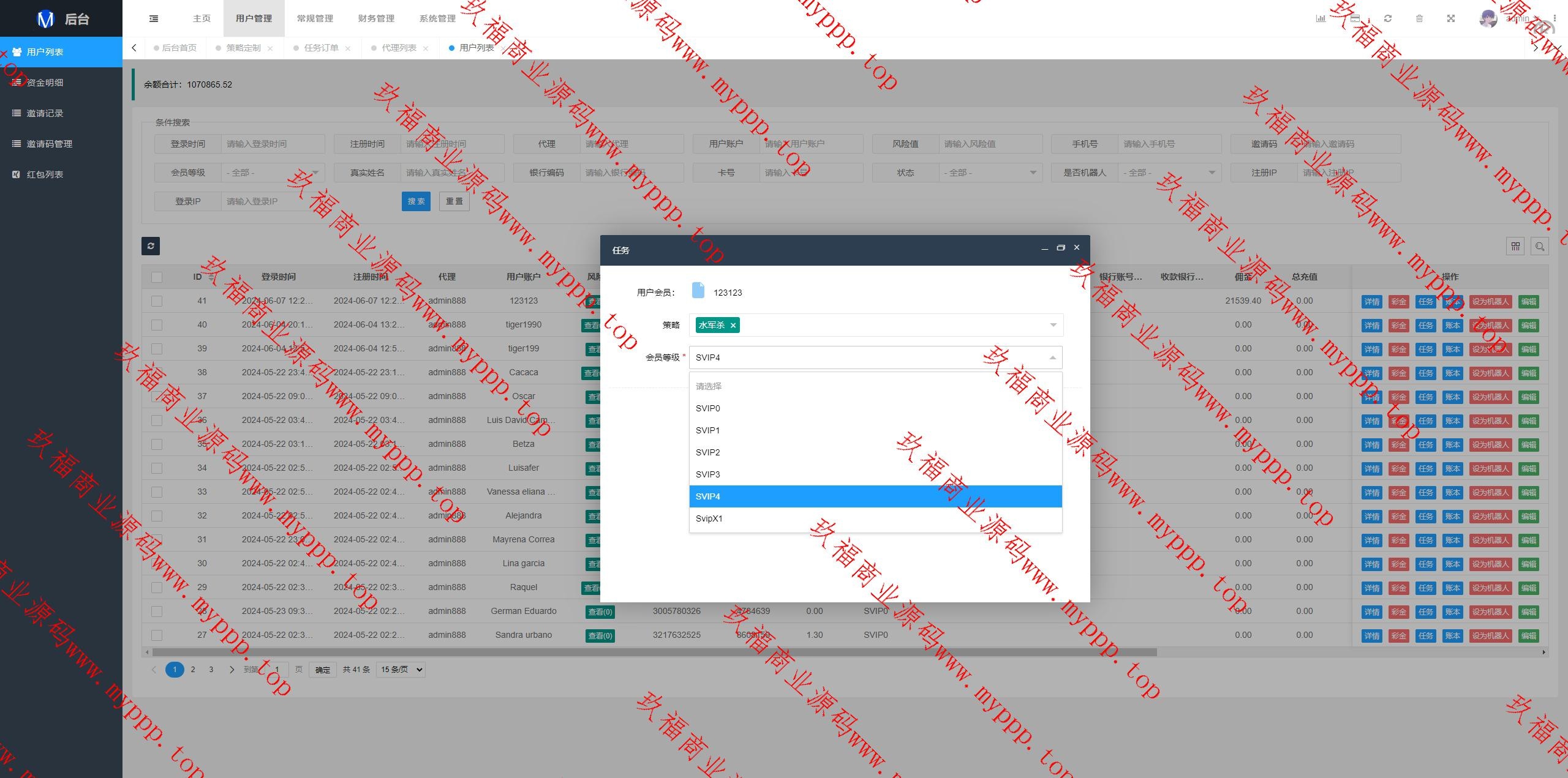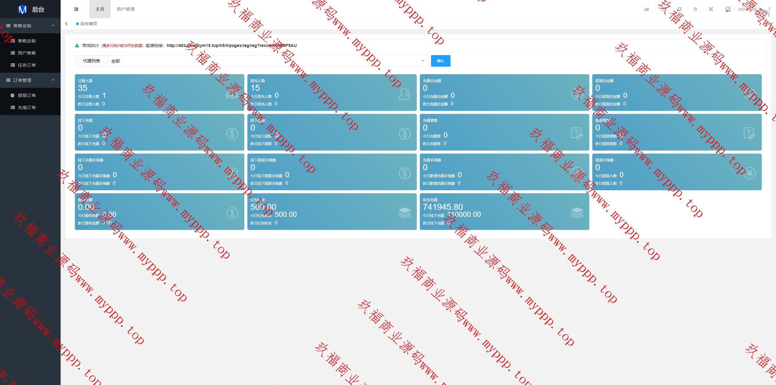 系统支持策略配置,后台共享代理后台独立,系统基本符合市场需求,单独的代理后台等功能。