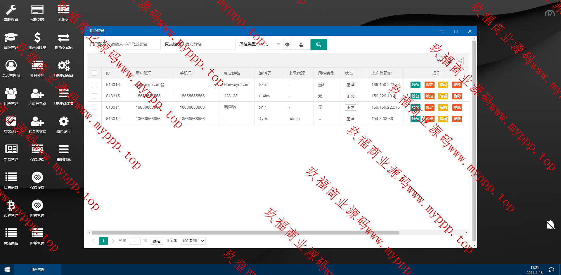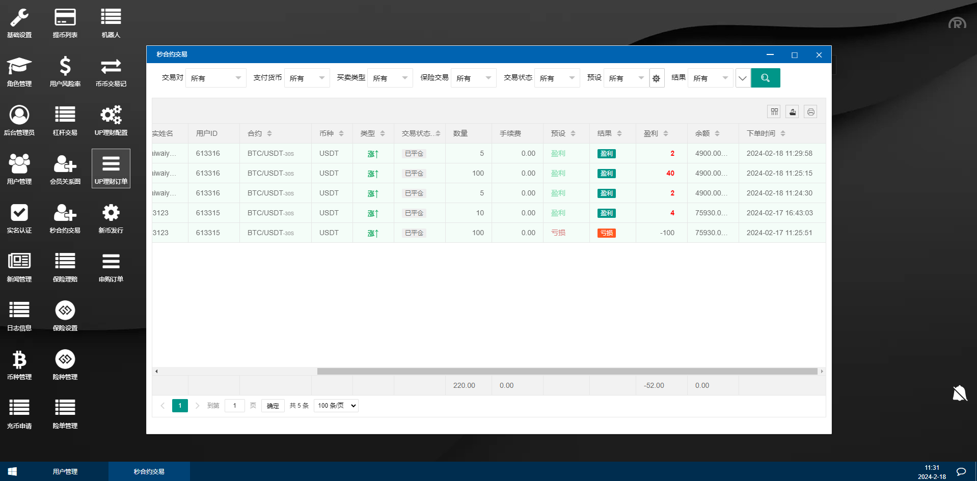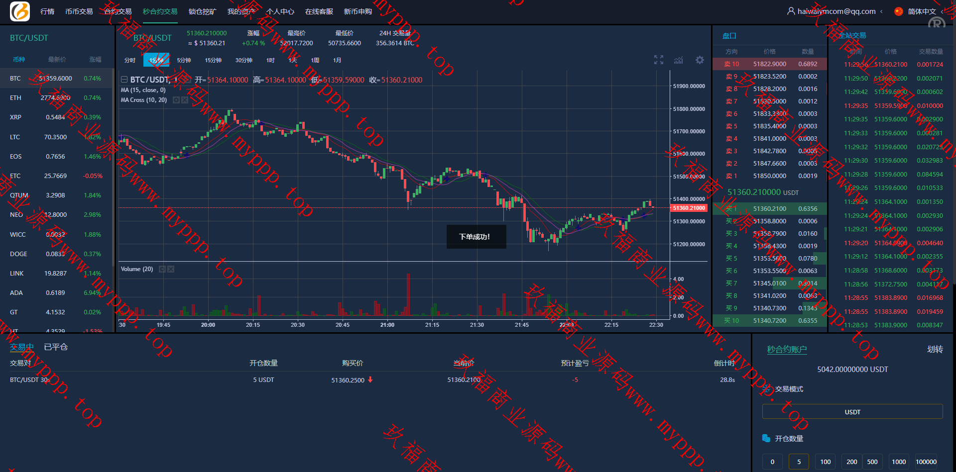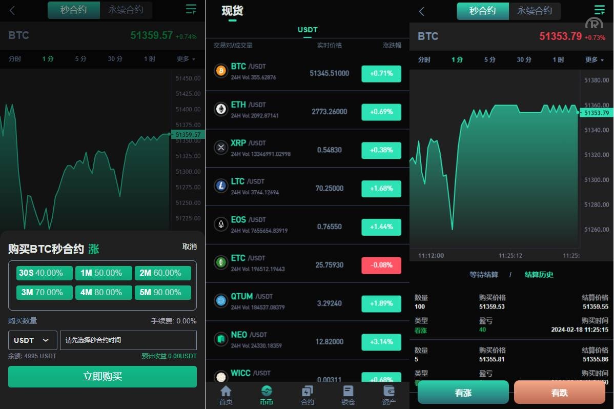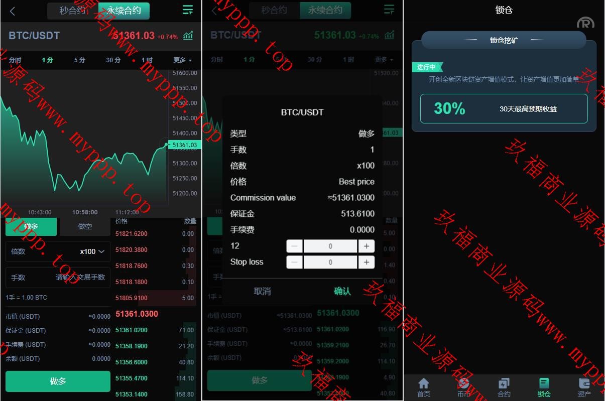 系统功能支持:秒合约、合约、锁仓挖矿、新币认购功能,无平台币