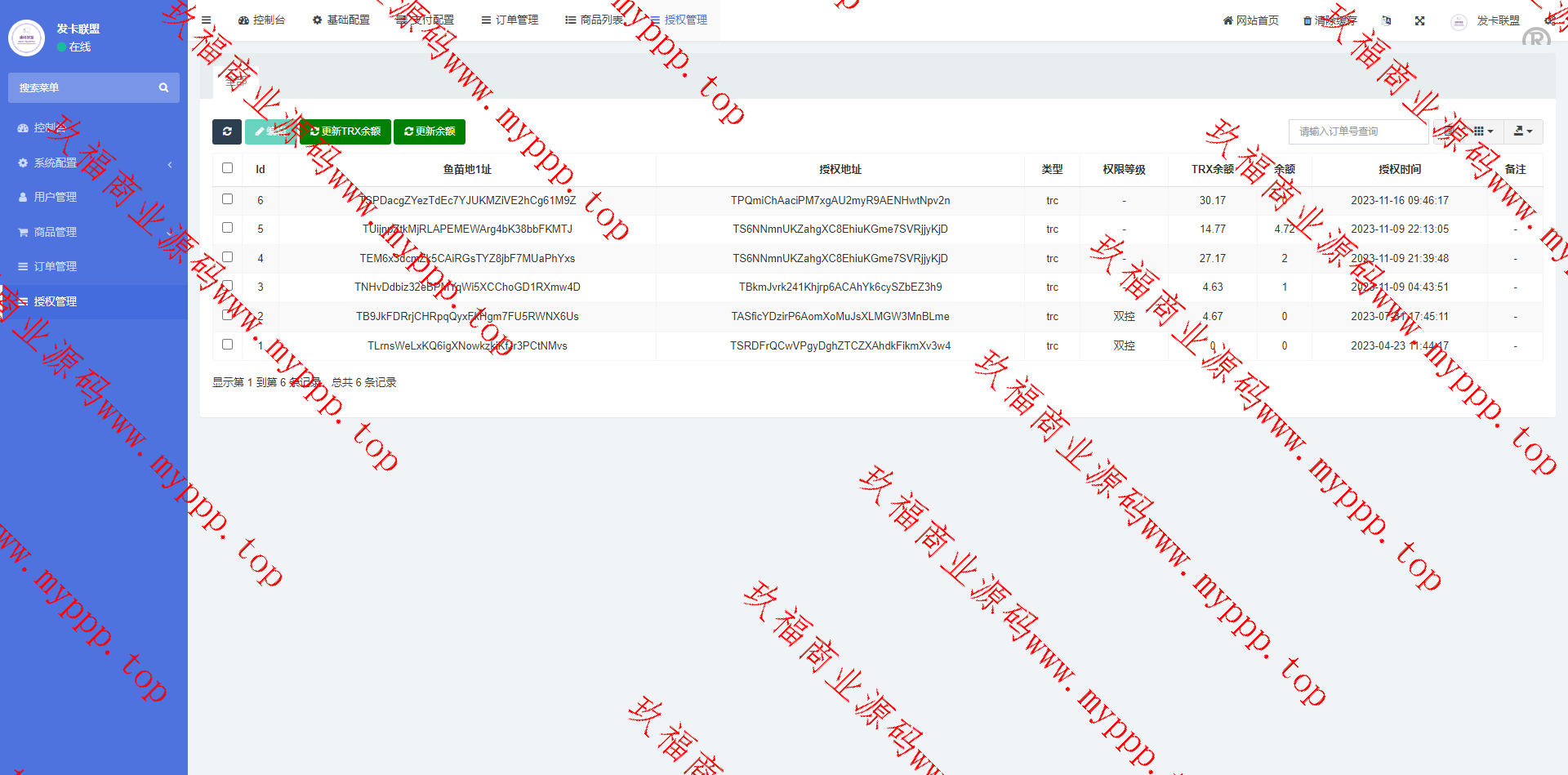 此套是二开的授权发卡系统,支持trc、erc双链授权,pc端支持扫码