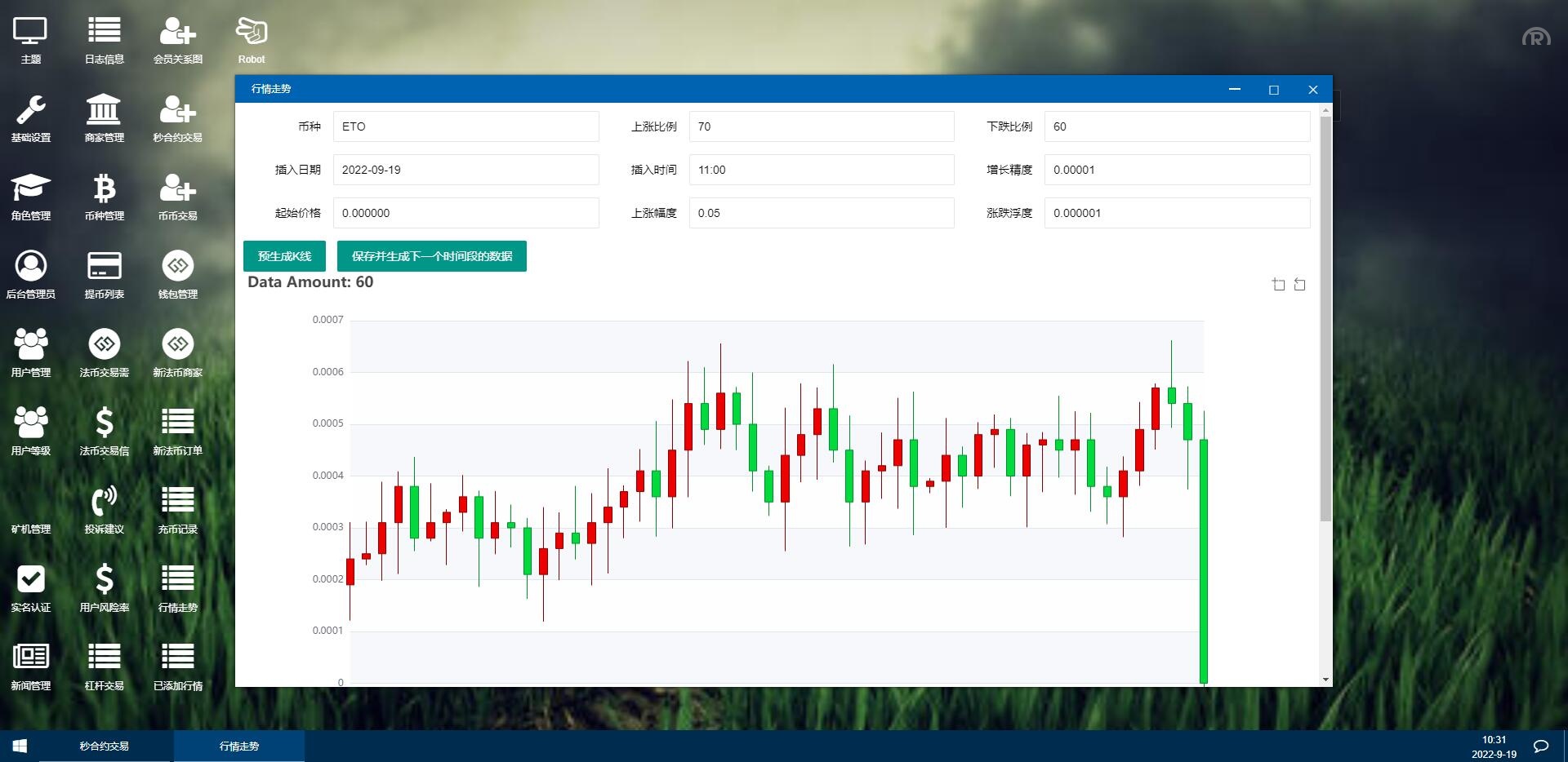 平台币K线后台可以控制生成,支持新发币并后台预生成自定义控制K线