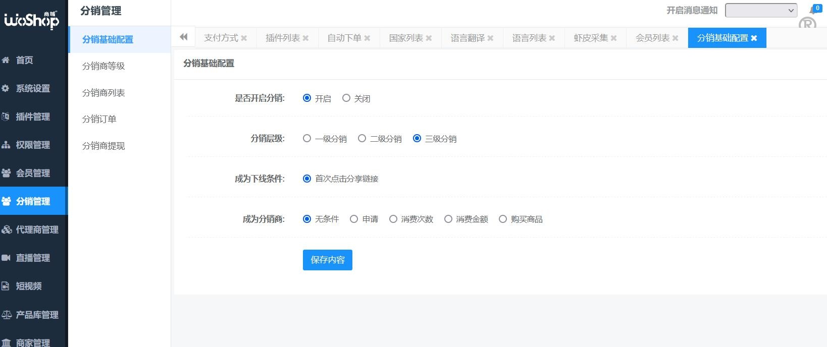 9.分销系统,专属推广海报、三级分销、佣金体系、推广体系、结算体系、自定义分销商等级