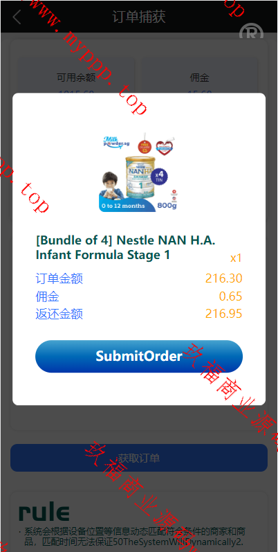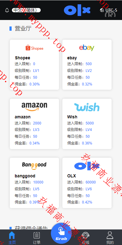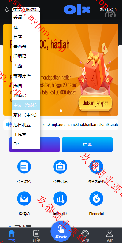 这是一款多国言支持的海外抢单刷单系统,前端多国言默认隐藏,用户可以自行开启。系统包括后台派单功能,前端可直接提交订单,同时提供代理后台,支持业务员推广管理。