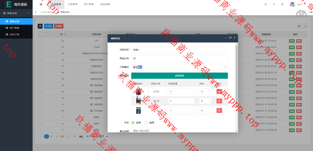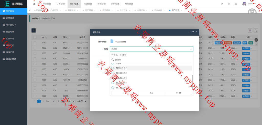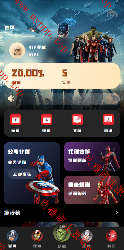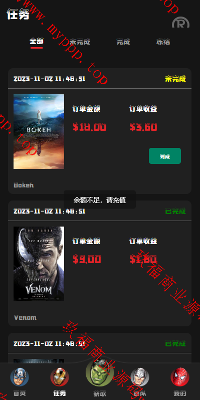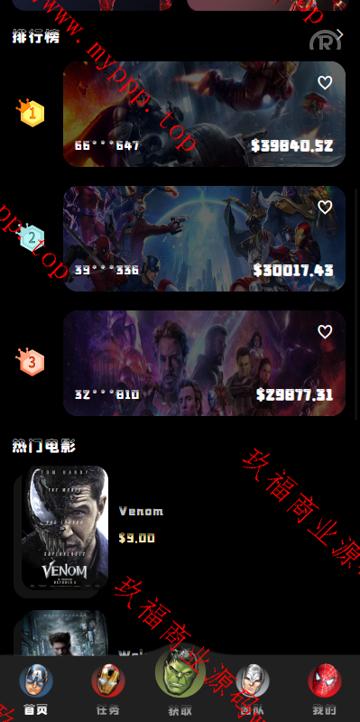海外多国言漫威电影刷单系统,配备独立的代理后台。系统支持用户策略设置,如注册送礼等功能。前端使用UniApp开发并附带源码,后端基于ThinkPHP框架。