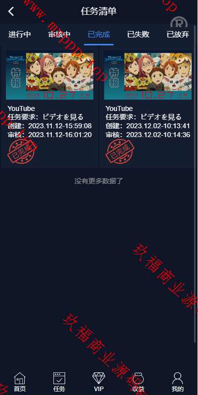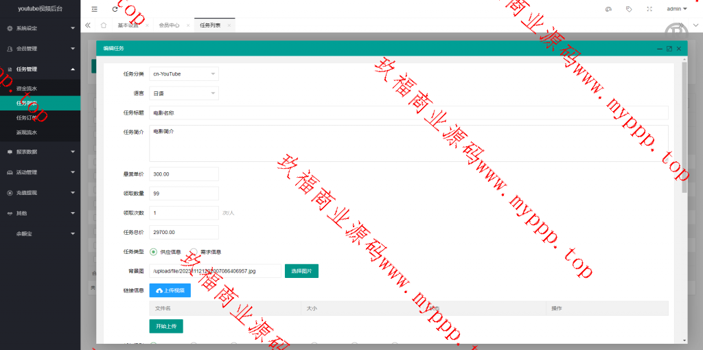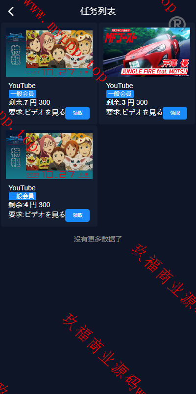 二次开发版视频返利系统,前端采用Vue开发,后端基于ThinkPHP框架,全部开源并提供完整源码。前端源码支持多国言,默认语言为日语,后台可添加任务并上传视频。