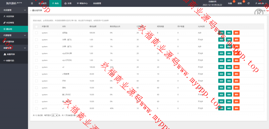 系统功能包括连单卡单、叠加租、打针、权限代理等。