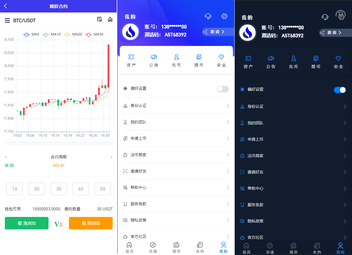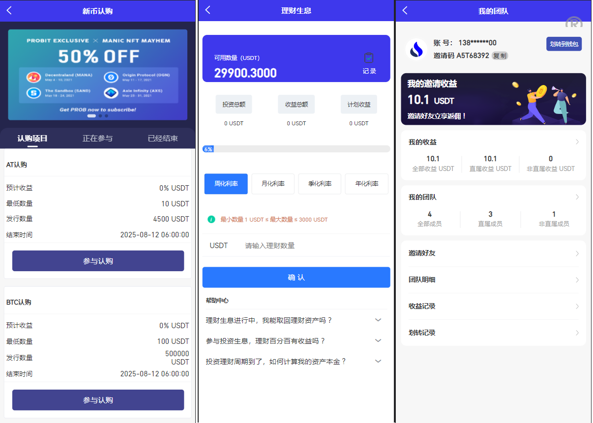 4.带邀请注册三级奖励、认购IEO锁仓机制、分红功能、定期释放,理财功能、持币生息,新币投票,支持交易。