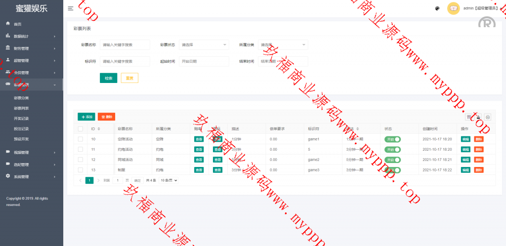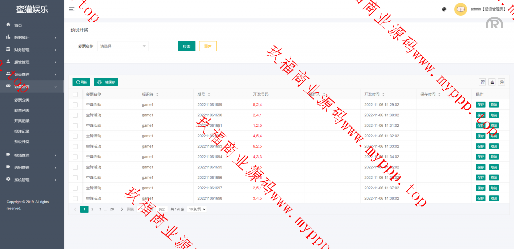 所有彩种都是系统彩,后台可控制开奖结果,可以提前预设开奖内容,带开奖脚本
