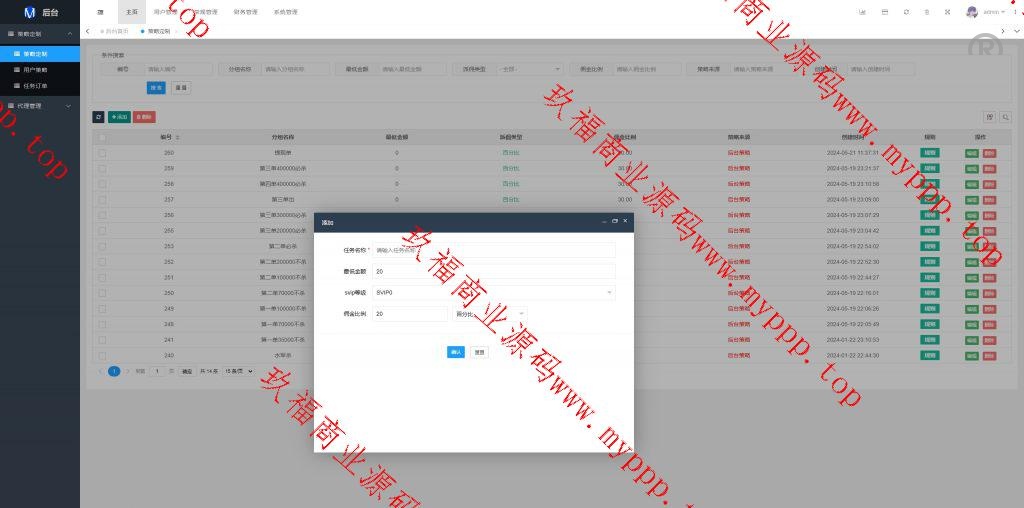 前端多国言,系统支持策略配置,后台共享代理后台独立,系统基本符合市场需求,单独的代理后台,新增红包赠送领取,风险值风险评估等功能,黑马源码亲测项目,联系客服要演示!
