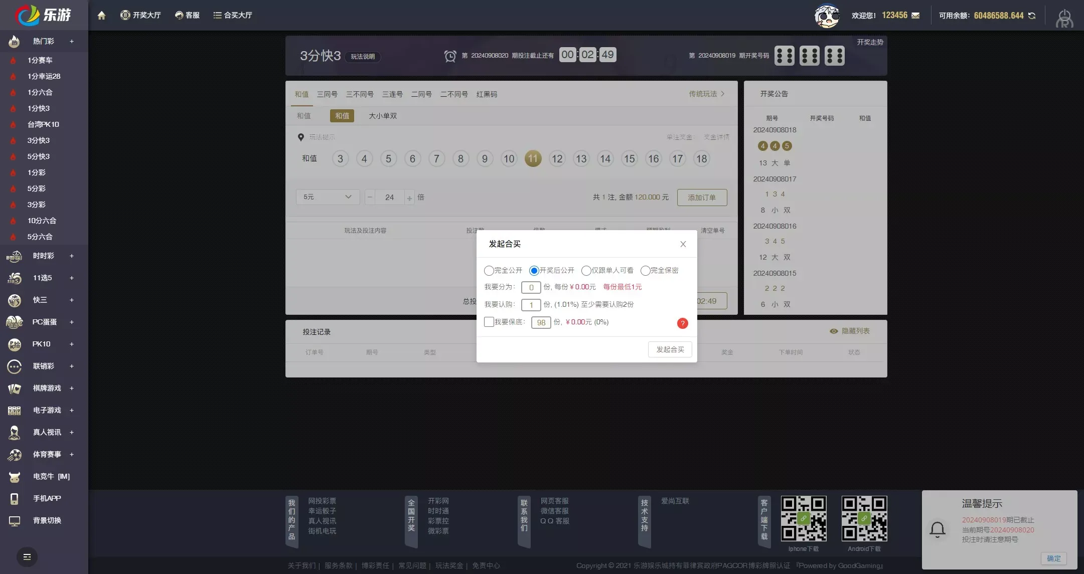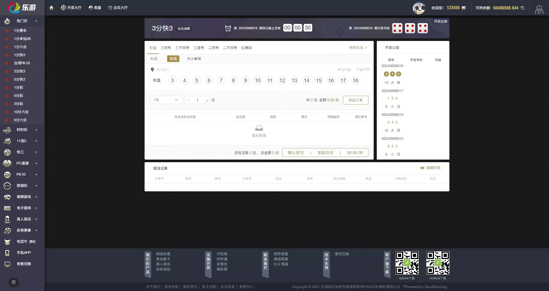 大富二开的一套程序,前后端都重构了,体验感比原来的程序好太多太多,功能上也二开了一些,快三还有红黑码玩法