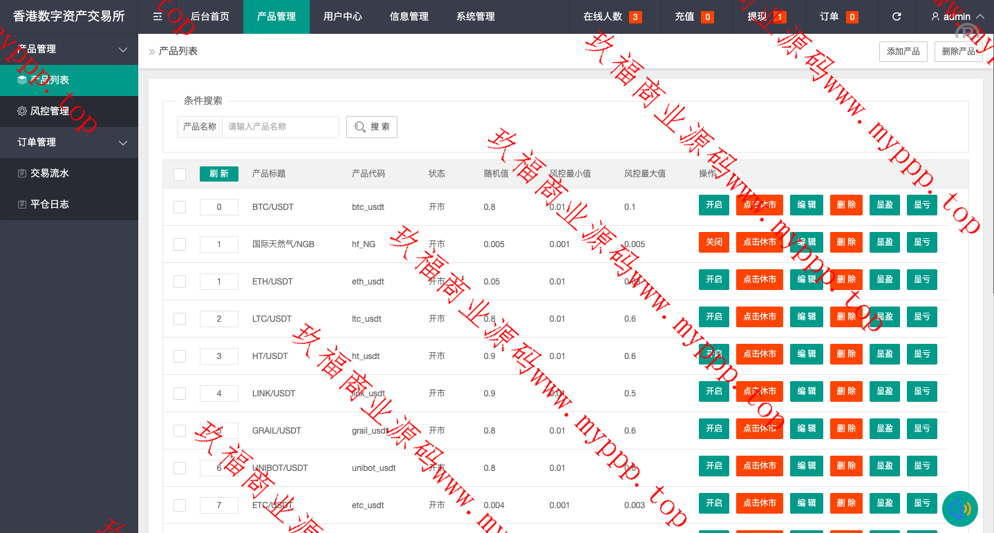 系统完美运行,框架非以前的至尊框架,前端k线正常,产品名称后台可任意修改