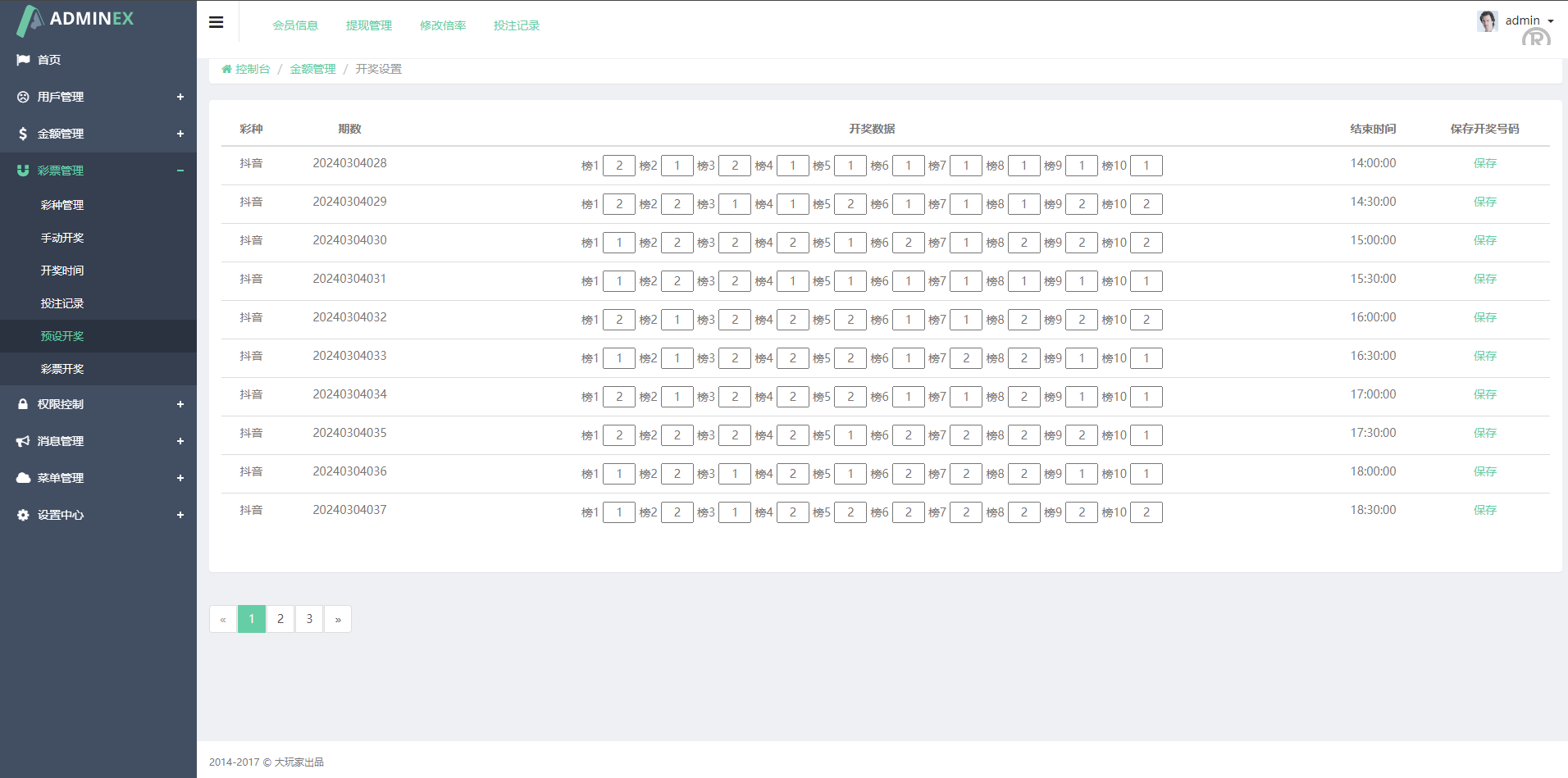 带完整安装教程说明,前台投注到时间需要后台手动开奖,带预设开奖
