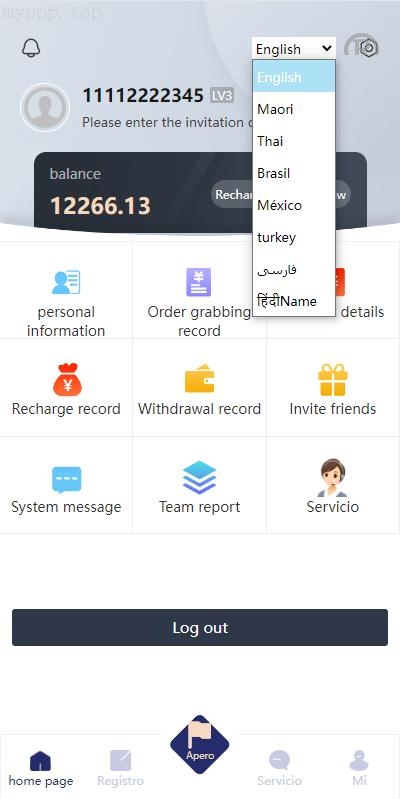 这是一款采用紫色UI设计的抢单系统,其前端支持多国言切换,包括英文、巴西语、墨西哥语、土耳其语、波斯语、印度语、泰语等。
