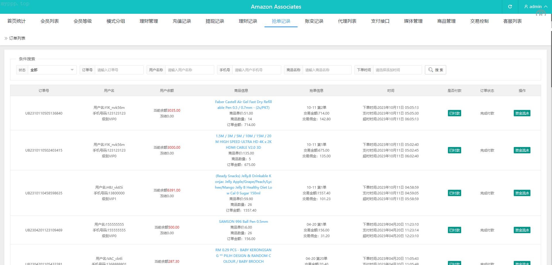 该系统具备叠加组、注射功能等特色模块,同时实现了USDT充值功能以及权限管理的代理后台。